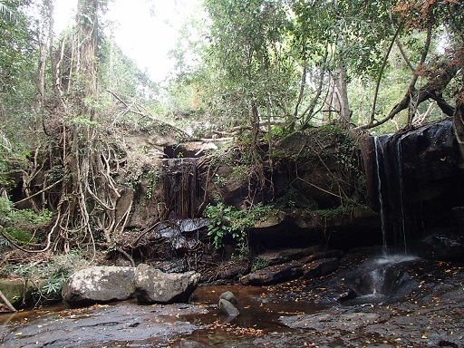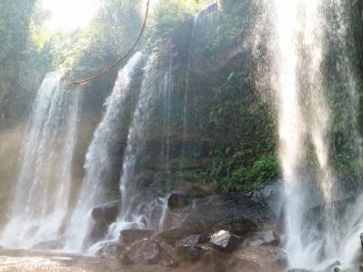カンボジア人の聖なる山への祈りの旅でした。多少の山歩きの後、2段の滝があり、滝つぼでは水浴を楽しんでいる人もおります。