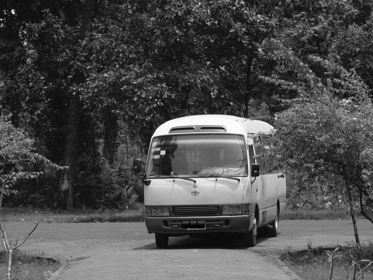 朝から他の参加者をあちこちのホテルに寄って乗せて、全部で5組9人で出発。長距離です。トイレに寄った喫茶店のトイレは蛇口から濁った水の出る極めて貧しいトイレでした。
