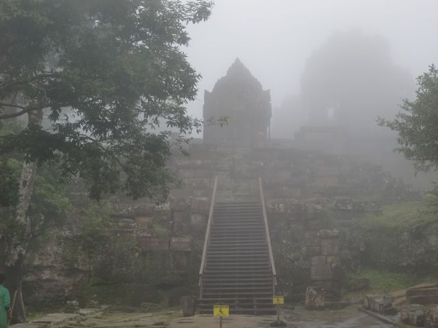 プレアヴィヒアは、曇り空で風が少しあり、外界が少し霞んでみえるという幻想的な絶景に広がっていて、まさに天空の寺院遺跡といった感じ。来てよかった!!