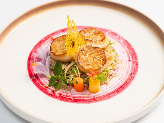 4. メイン - ズッキーニのグリルとフォアグラとマンゴーソース