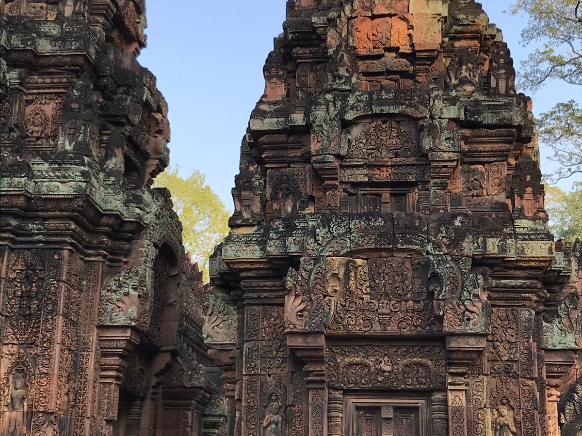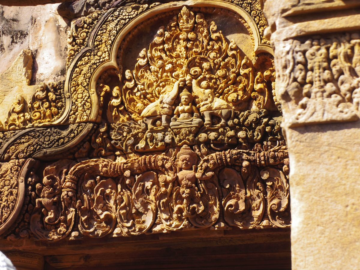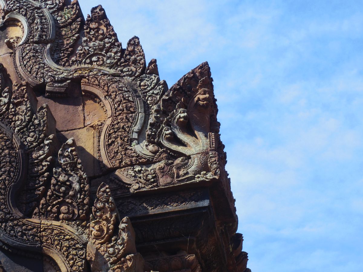 バンテアイスレイはクメール美術のある意味頂点を極めた遺跡とされおっしゃる通り非常に緻密な彫刻が見どころの寺院です。