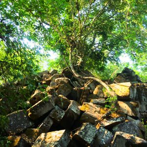 崩れた岩の山に苔が生えており、綺麗であるが、乾季のため少し茶色っぽくなっているところもあった。雨季が明けた直後に訪問する方が緑に苔むした状態が見れるそうなので、より良いかもしれない。