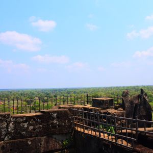 山の上に位置する寺院。シェリムアップ中心地から3時間ほど離れたタイとの国境にある。