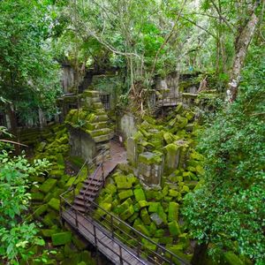 一日中のツアーでハードかと迷いましたが行ってよかった!四駆は老人と女子は車中、若者は荷台で楽しかった様です。ベンメリアは朽ちていく遺跡のアドベンチャーが楽しくラピュタ感も魅力的。プレアヴィヒアは言葉を飲む絶景。国境というのも島国の日本にはない体験です。坂を登りますがゆっくりなので運動靴なら大丈夫です。息子はサンダルでした。暑いので水は必須です