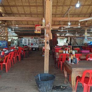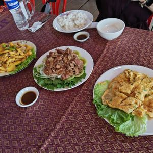 コーケー遺跡観光後に遺跡近くのレストラン(屋台のような場所)で他のツアー方とみんなで大皿の料理を取り分けて食べました。笑