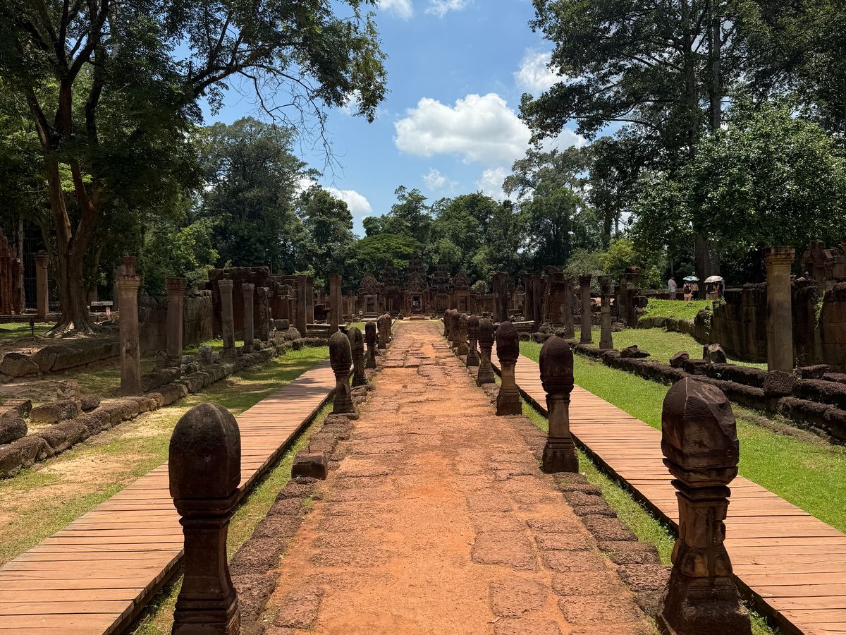 遺跡は大変美しく、次回来た際にはもう少しゆっくり見たいと思いました。ベンメリアは木がたくさんあるので、木陰は涼しく見学しやすかったです。歩道や手すりが整備されていて見学しやすいです。段差はあります。バンテアスレイは木陰がないので、大変暑いですが、それほど混雑していなかったので、日傘がさせました。雨季でしたがカンカン照りで暑かったですが、歩いての観光なので、雨ならば大変だっただろうなという感じです。ベンメリアは本当にきれいなのでおすすめスポットです。