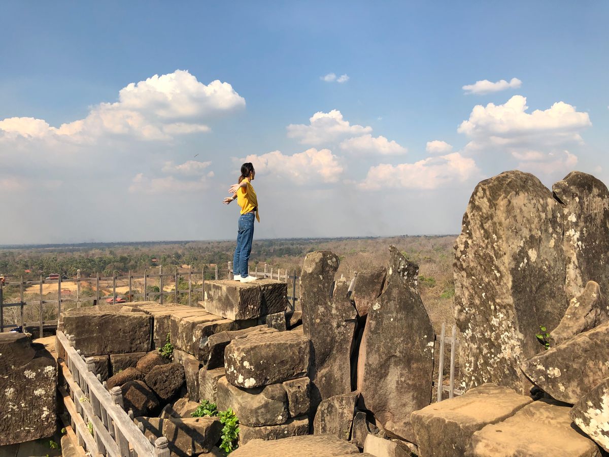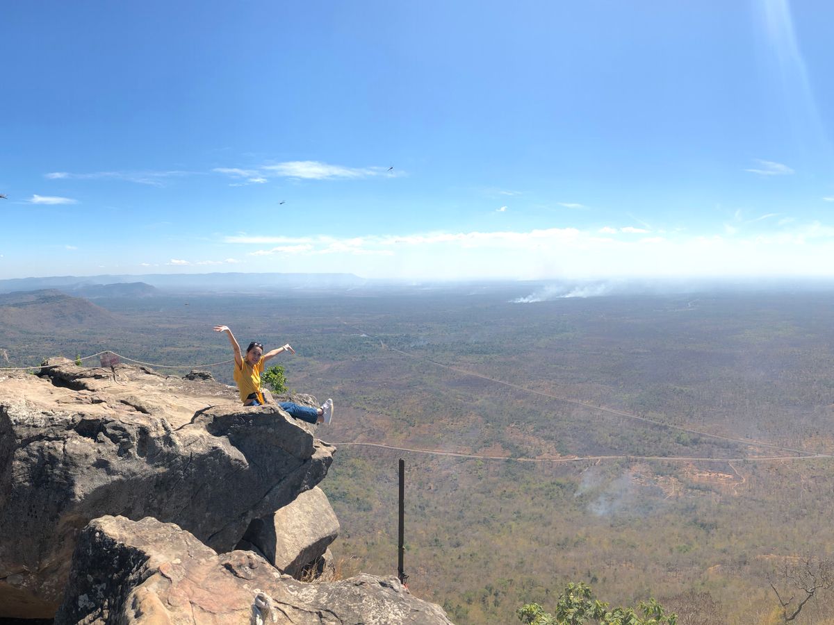 着いた先にはアンコールワットよりも古い遺跡や、タイとカンボジアの国境、そして断崖から一面に広がる景色!(この時は焼けはたによりだいぶ曇ってましたが笑)