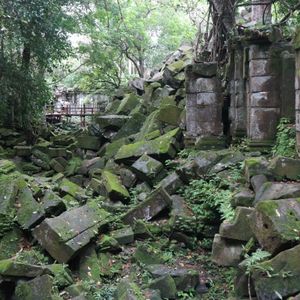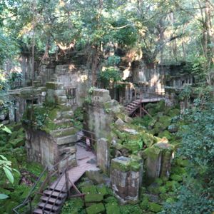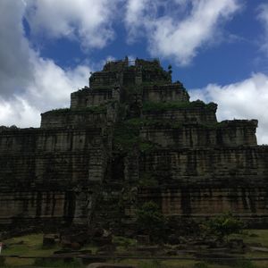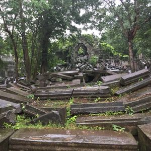 雨季での観光でしたが、雨だとプレアヴィヒアに登っても何も見れない!とガイドさんに急き立てられるように、朝早くから駆け足気味に登りつめ、体力のない自分は正直疲れ果て、登頂時には頭痛と吐き気と目眩に襲われました。が、無事に霧がうっすらとかかる程度で、なんとか景色も拝めました。ベンメリアとコーケーの荒廃的かつ神秘的な美しさはたしかに、宮崎映画を彷彿とさせ、心躍りました。