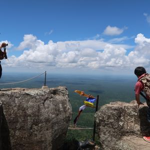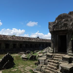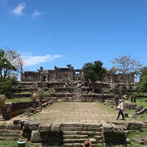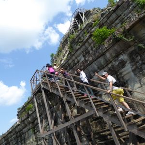 思い切って、世界遺産プレアヴィヒア寺院にいってきました。結果として、行ってよかったです。タイとの紛争地域であったとのことで、軍人さんとその家族の方がたくさんいましたが、見学するにはまったく問題ありませんでした。4WDの車の荷台にのって山の頂上にいくのですが、スリルがあります。そのもの自体がアトラクションです。天候もよく、断崖絶壁での景色、写真撮影はスリルがあります。よい思い出になりました。途中雨がふり、コーケー遺跡群をゆっくり見られなかったのが残念でした。ベンメリアは、ほとんど修復の手が入っていないので、苔と大木に覆われて幻想的な光景の遺跡でした。1日移動時間の多いツアーですが、ぜひ、いかれることをお勧めします。コーケー遺跡で昼食をしましたが、大変おいしかったです。