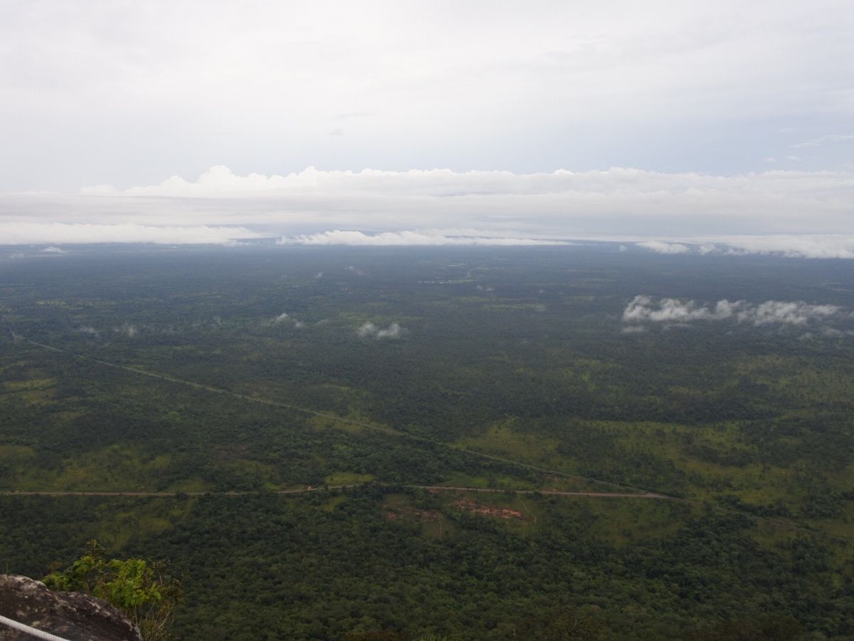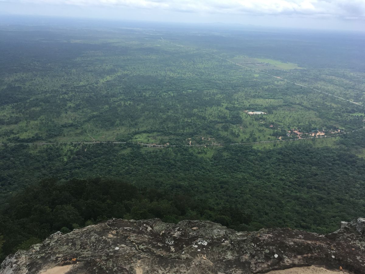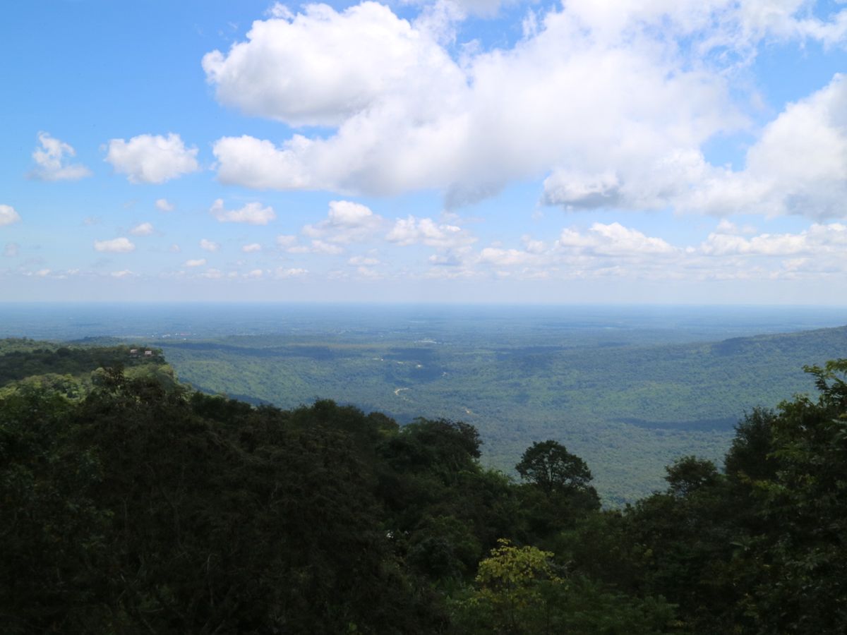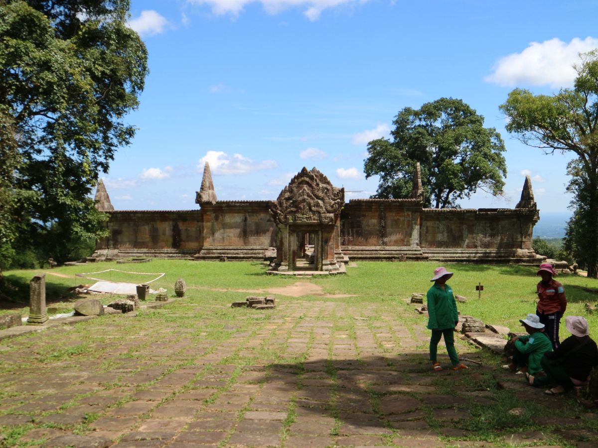 1時間くらい遺跡を見ながら山を登っていくと国境です。雨季だったので天候が心配でしたが雨季の方が景色がきれいに見えるそうです。崖に腰掛けて写真を撮り良い思い出です!