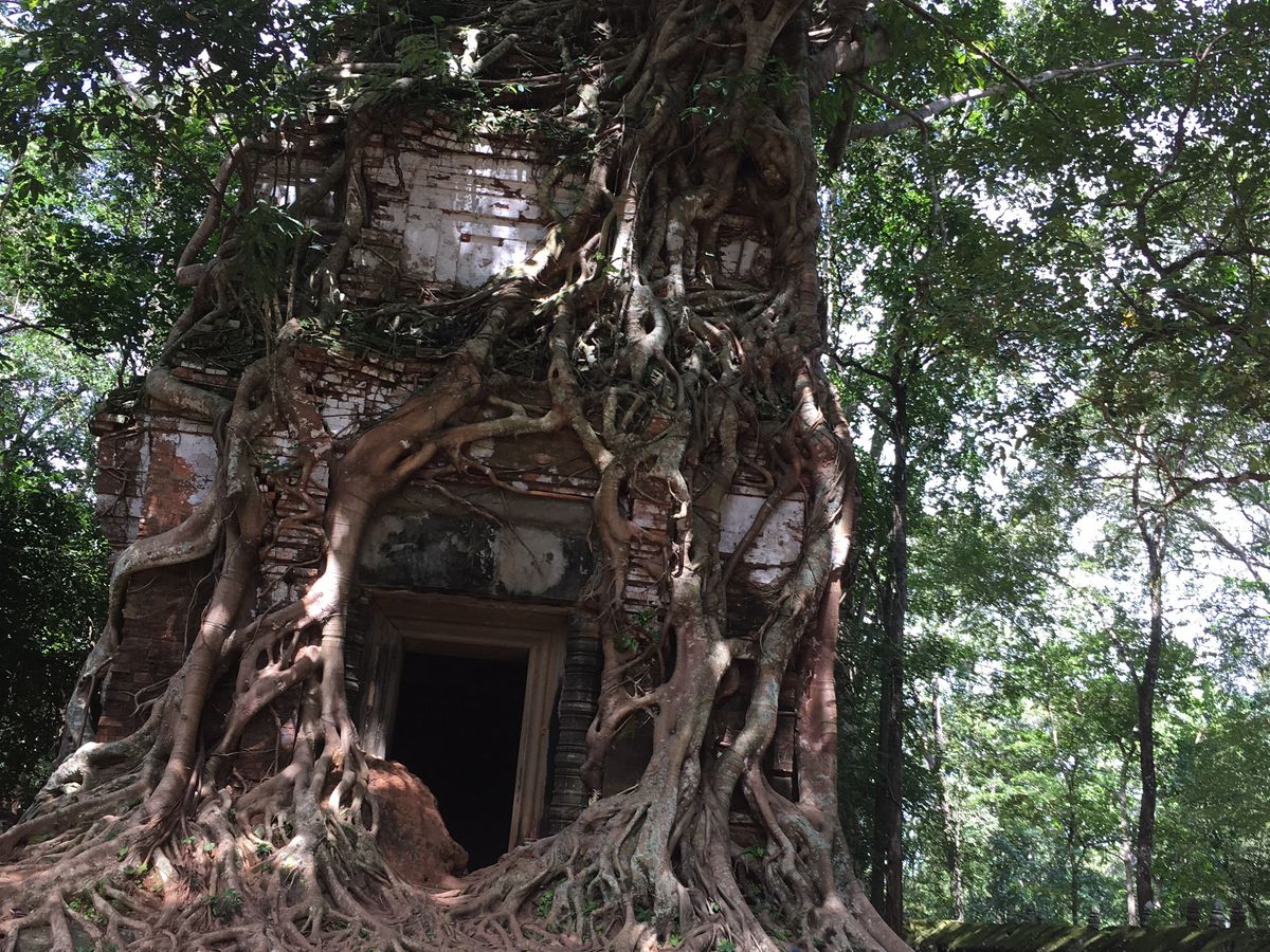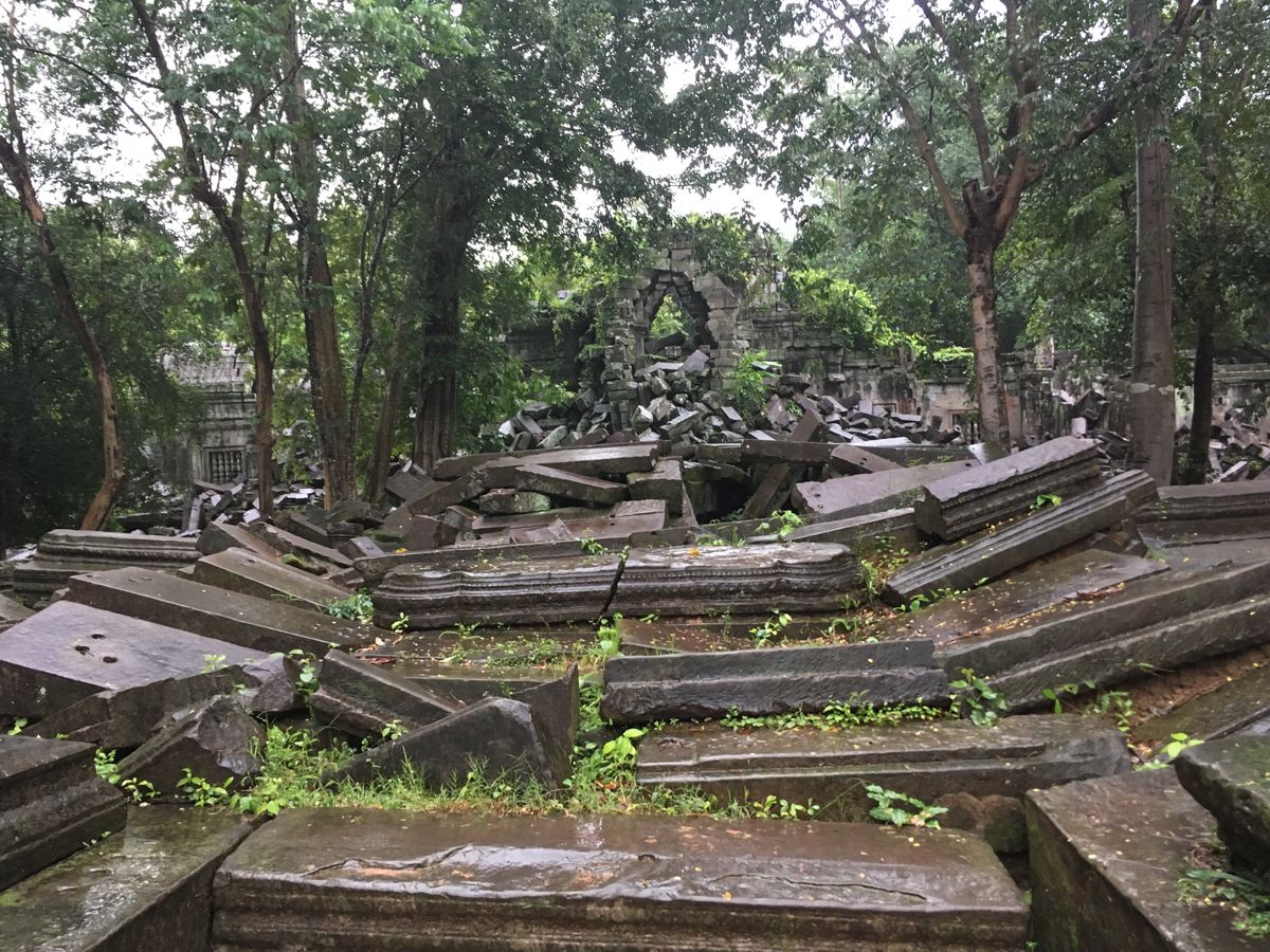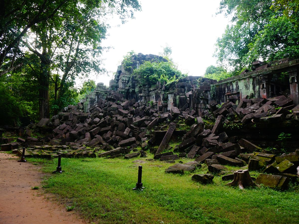 雨季での観光でしたが、雨だとプレアヴィヒアに登っても何も見れない!とガイドさんに急き立てられるように、朝早くから駆け足気味に登りつめ、体力のない自分は正直疲れ果て、登頂時には頭痛と吐き気と目眩に襲われました。が、無事に霧がうっすらとかかる程度で、なんとか景色も拝めました。ベンメリアとコーケーの荒廃的かつ神秘的な美しさはたしかに、宮崎映画を彷彿とさせ、心躍りました。