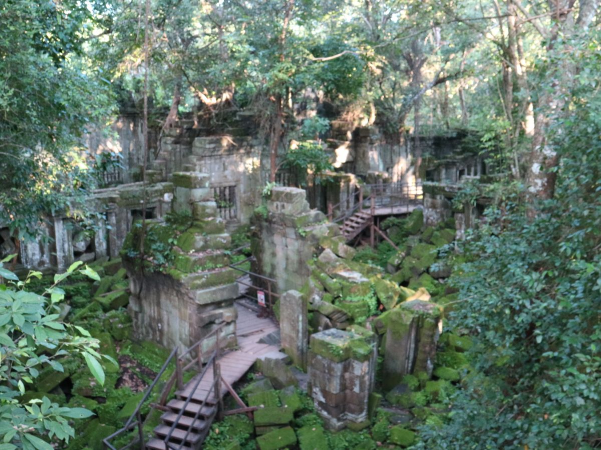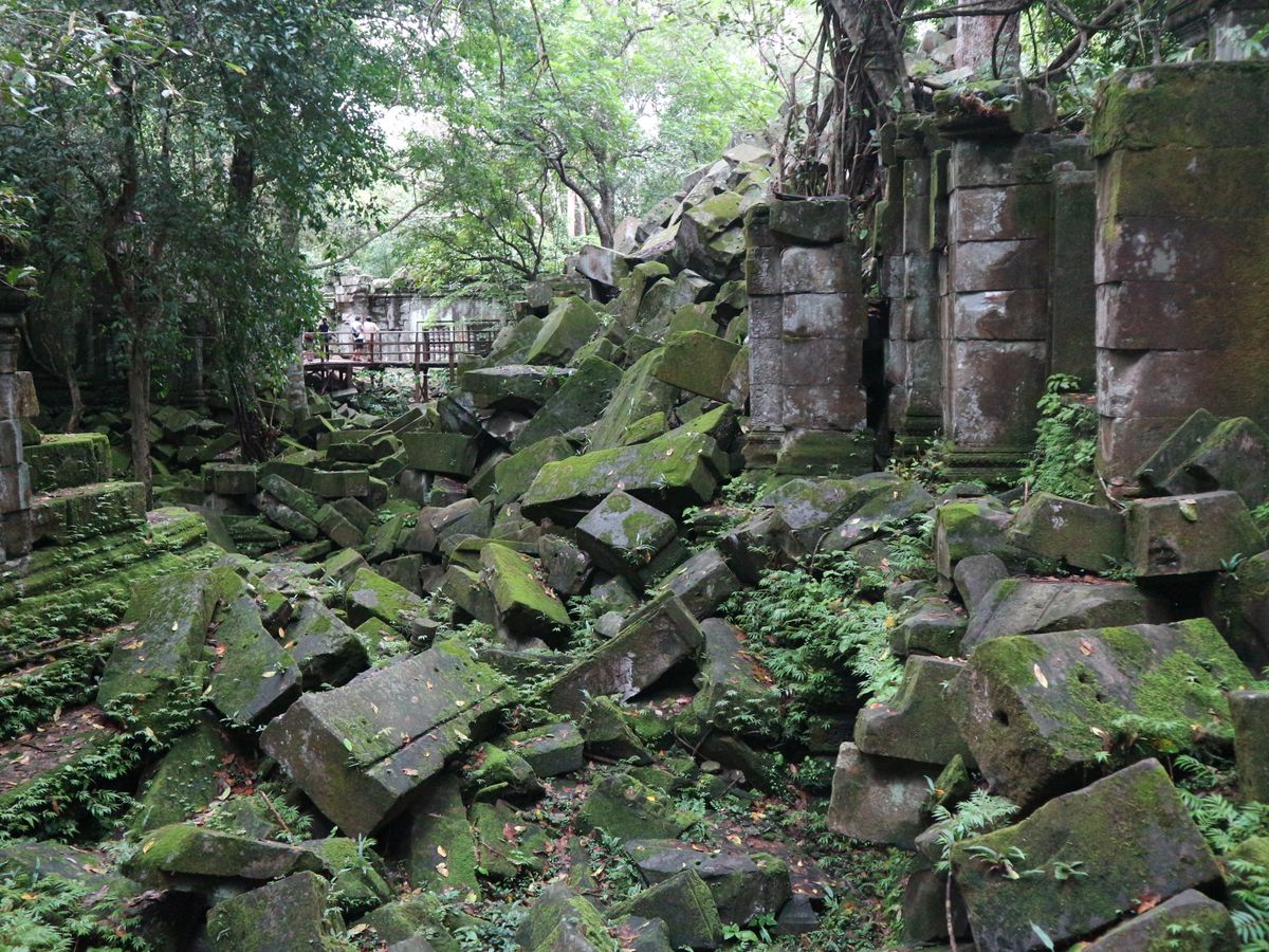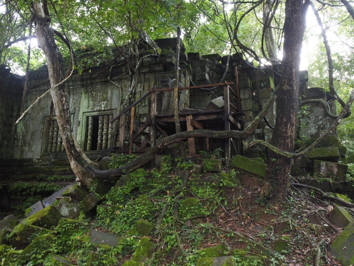 雨季での観光でしたが、雨だとプレアヴィヒアに登っても何も見れない!とガイドさんに急き立てられるように、朝早くから駆け足気味に登りつめ、体力のない自分は正直疲れ果て、登頂時には頭痛と吐き気と目眩に襲われました。が、無事に霧がうっすらとかかる程度で、なんとか景色も拝めました。ベンメリアとコーケーの荒廃的かつ神秘的な美しさはたしかに、宮崎映画を彷彿とさせ、心躍りました。