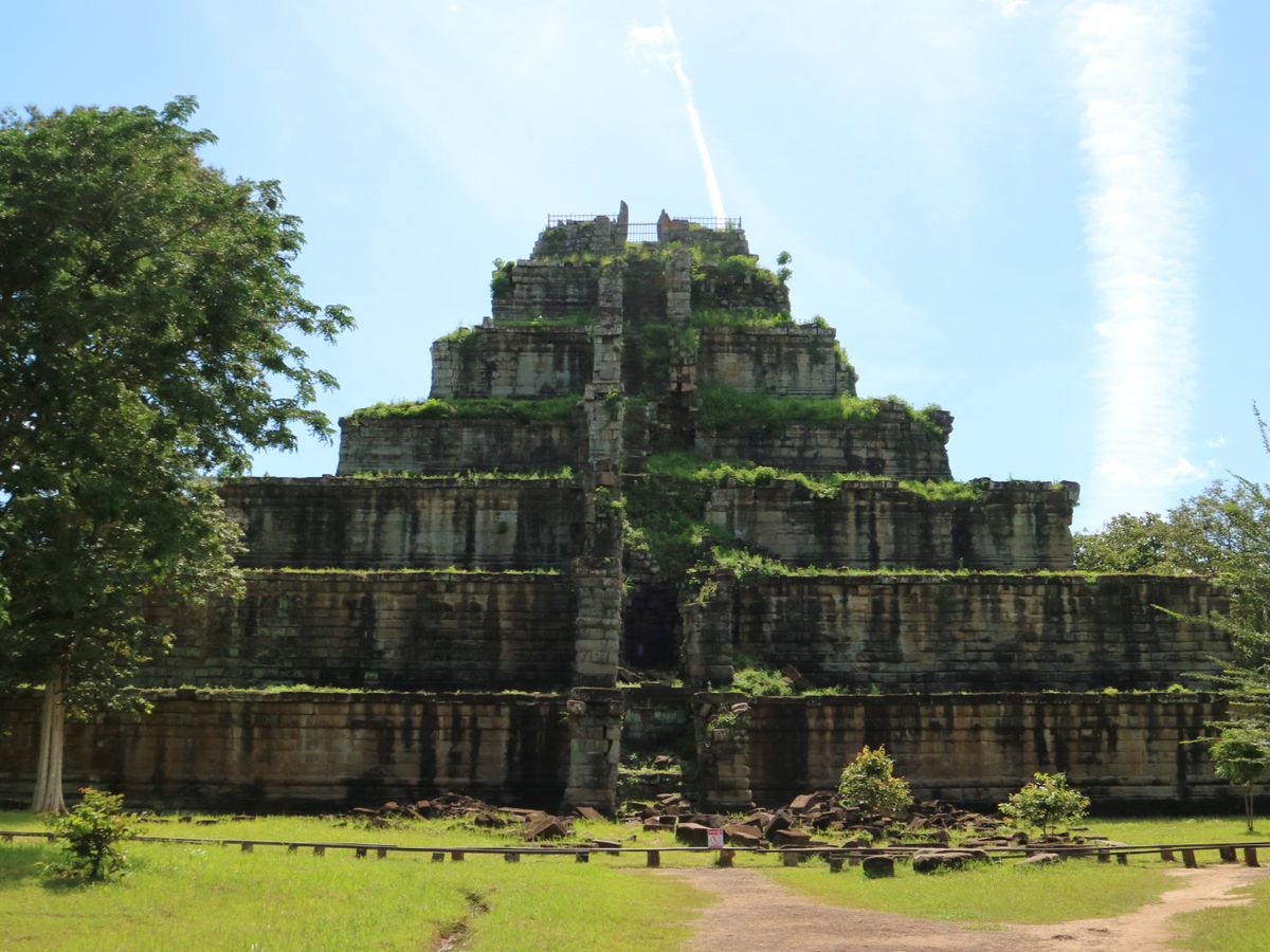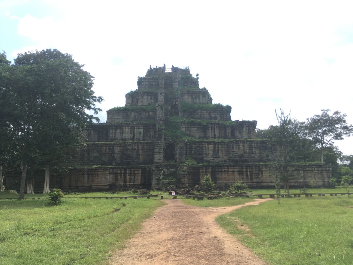 コーケーでは珍しいピラミッド型の遺跡が見れました。頂上からは360度カンボジアの森が見渡せます。