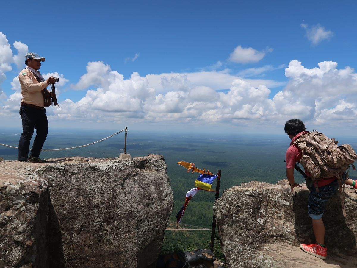 混雑している時期には順番待ちになるそうで15分位そこで写真やビデオを撮ったりしました。当初11時40頃には撤収のはずがガイドさんの好意で30分位延長してくれてカンボジアで一番高い山(日本で言えば富士山??)の素晴らしい景色を堪能できました。