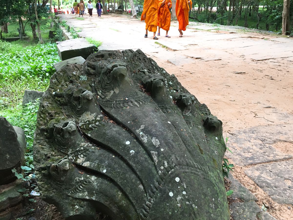 プリアヴィヒア寺院は、還暦を過ぎた父母には道のりが少し厳しかったようです。しかし、アンコールワット、アンコールトムと比べても、遺跡の保存状態がよく繊細な彫刻を楽しめました。
