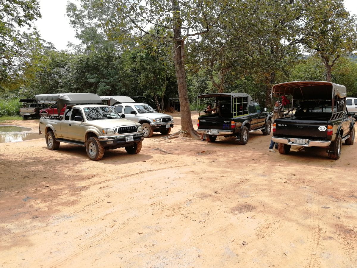 午前中は中国人観光客が多いと言う理由でベンメリアを最後にすると言うことでプレアヴィヒア→コーケー→ベンメリアの順に回りましたが、これが大正解。スタートした頃にはまだ雲があったものの片道3時間へのプレアヴィヒアの道のりで若干雲があるものの晴れてきて、最高のコンディションになり、途中で4WD車に乗り換えて上の方に行くに従いすごい凸凹のある山道を登り現地に到着。ここで入場料25ドルをガイドさんに支払いチケットを購入してもらいます。