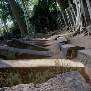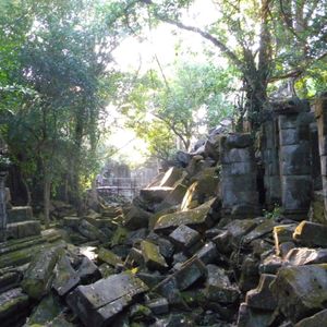 行きはベンメリアまで一時間、そこからコーケーまで一時間、さらにプレアヴィヒアまで二時間。帰りは四時間ワンボックスカーでがたがた揺られます。時間はかかるのですが、各遺跡とも混雑して観光名地化しているアンコールワット近辺と違って、静寂さと自然が悠久の時を感じさせ、行く価値大いにあります。お勧めです。