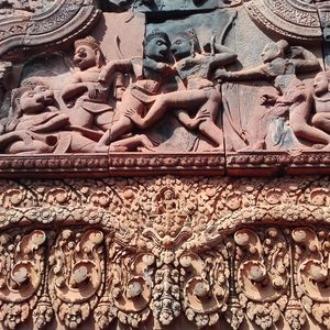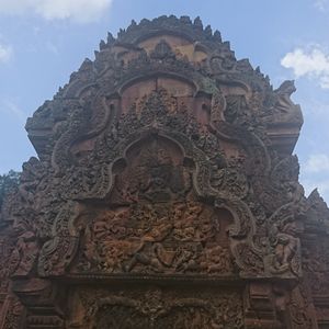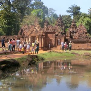 アンコールワットと同じ時代の遺跡で、彫刻の深さなどはっきり残り、土の赤っぽさも綺麗でした。思ったより見所は少なく東洋のモナリザも遠くからしか見られませんでした。個人的には普通です。