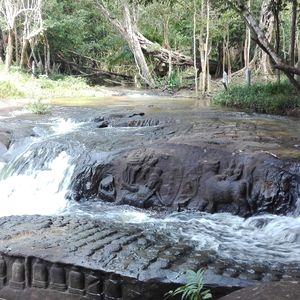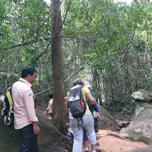 事前にハードであることを当サイトの口コミで知り、万全で挑みました。ハイキングというよりは小学生時代の山登りという感じでした。持ち物に軍手とありましたが、ここも階段が作られ以前より大分難所は減ったとのことで使う場面はありませんが雨季のためパラパラと雨が一瞬降ったのでレインコートは持参した方が安心です。1500mほどの山でしたので、いい運動になったと思います。汗を多量にかいたので現地のお店で遺跡のTシャツを2~3ドルほどで購入したのもいいお土産になりました。雨季で川の水量もあり遺跡も綺麗でした!予想より楽しかったです!