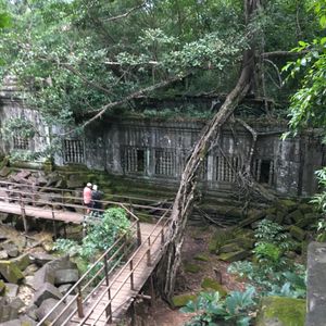 ベンメリアは世界遺産ではないためここ数年で整備され、遺跡の上に木でできた階段や通路が作られてました。そのお陰で大変歩きやすい状態になっていましたが、感動は半減しました。ですが、場所によっては一部遺跡剥き出しのままがあるのでシャッターチャンスはいくつかあります。大きな石がゴロゴロと倒れ、木の根が張り付き苔がむしたところをみるとロマンを感じてしまいます。是非オススメします!