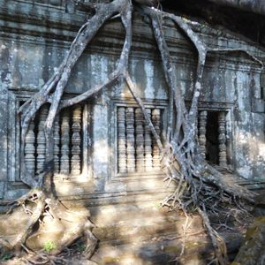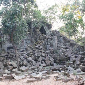 11時、次の訪問地ベンメリア寺院遺跡へ40分、ベンメリア寺院は1090-1120年ごろ建造されたヒンズー教の寺院、第一印象は壊れ方がひど過ぎる。ほとんど原形をとどめていない。地震でもなければここまで壊れないだろうと思う、ガイドさんによればカンボジアは地震がないという。過去の戦争やポル・ポトによる人為的な破壊を感じさせる。唯一ナーガと呼ばれる蛇神像はきれいに残っているのが不思議な気がしました。