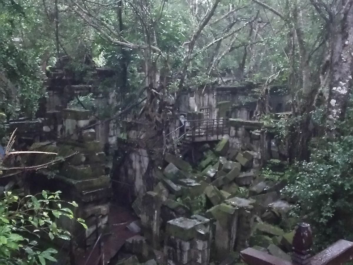 大量の瓦礫の中、朝露の緑濃い苔の迷路を散策するベンメリア、広範囲に渡り遺跡群を束ねるコーケー、小さな集落の中にいきなりそびえ立つピラミッド プラサット・トム、4WDに乗り換え山を上り、崖の上にあるプレアヴィヒア。