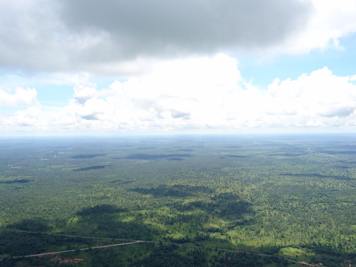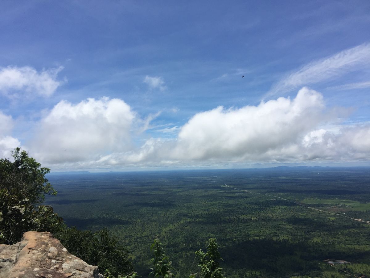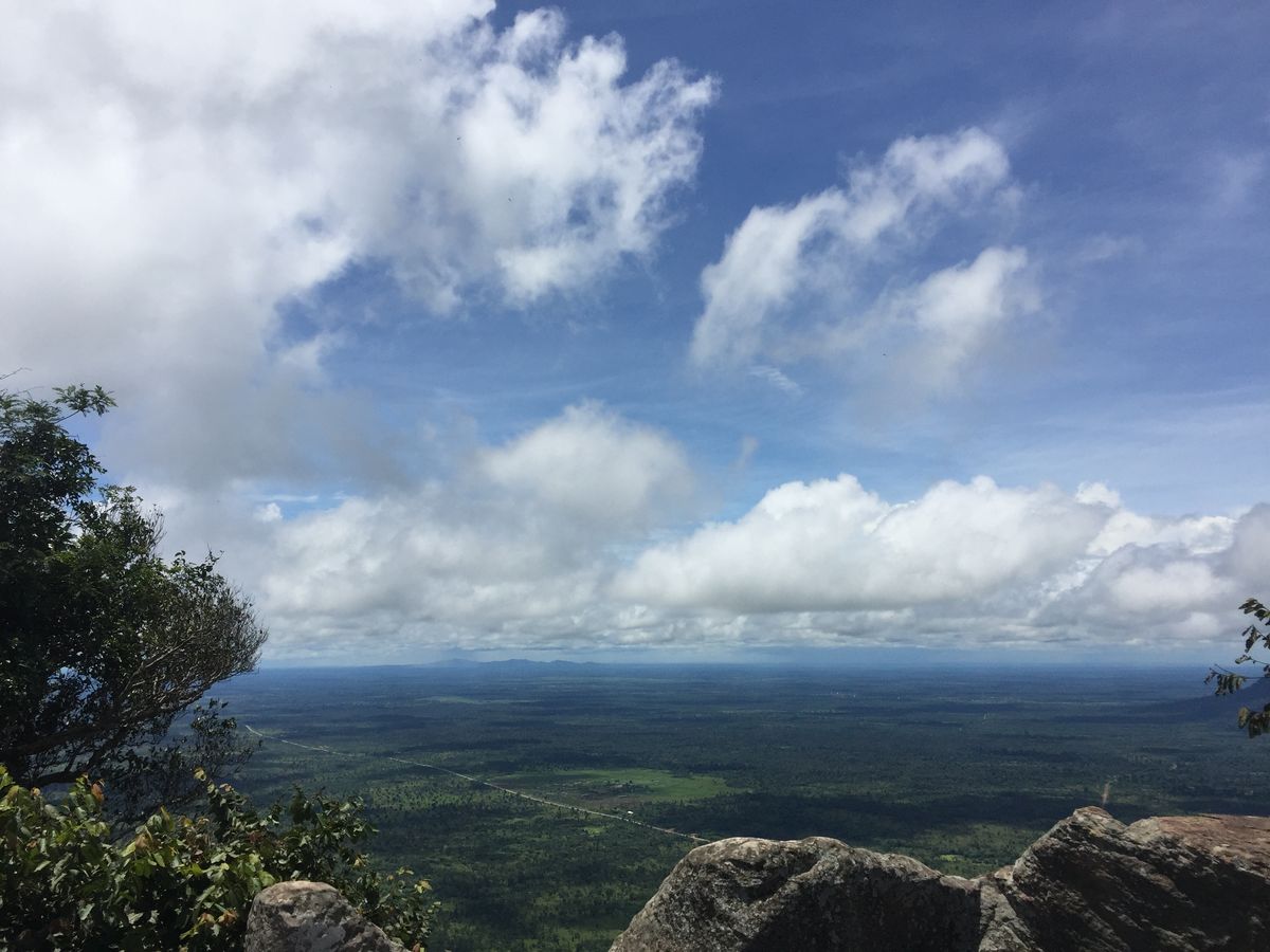 プレアヴィヒアに到着した際、山頂付近は雲に隠れていましたが、遺跡を歩いている内に晴れ、念願のカンボジアの大地を見渡すことができました。