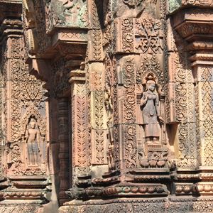 バンテアイ・スレイはとても美しかった。山はハイキング程度だと思っていたらけっこう急な所も登ったので、両手を空けられる身軽な服装がおすすめ。ランチのお弁当は、塩味も無しのタイ米?おにぎりが本当に美味しくなかった。下山してレストランで食べるのになぜお弁当?色々持っていったお菓子が役立った。少し場所が離れているので車の移動中に休めるけれども、体力もいるツアーだった。人数が多く、ガイドさんの説明があまりよく聞けなかったことも残念。