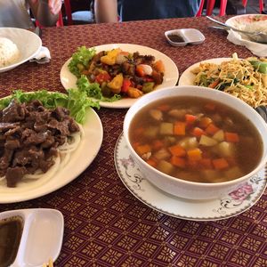 昼食は、屋台風の食堂。埃の中での食事は厳しかった。味は家庭のクメール料理っぽかったが、疲れもあり殆ど食べられなかった。ゴメンなさい。夕食は美味しくいただきました◡̈❁