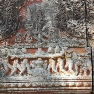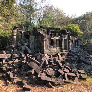 アンコールの主要遺跡よりも古い時代の遺跡ですが、レンガ主体、バコン寺院のほうは砂岩が使用されておりますがアンコールワットなどと比較しても石の大きさなどもそろっており、石もふんだんに使用できた時代だったんだな、というのがわかる遺跡です。