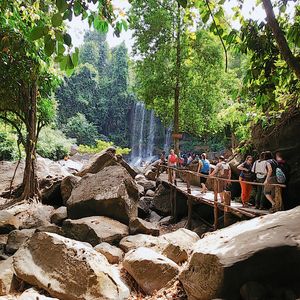 天気良好、一人のみのツアーでした。朝渋滞で市内を抜け出すのに時間がかかったので、ガイドさんの判断で訪れる遺跡の順番が変更されました。バンテイアスレイは赤茶けた建造物と美しい彫刻が印象的でした。プノンクーレンは滝が2カ所あり、上の滝は落差が小さいながらも水の勢いは強く、皆さん滝に打たれて楽しんでいました。下の滝は長い階段を下ったところにあり、落差が大きいためか滝に打たれている人は少なく、滝の前に広がる綺麗な滝壺で泳いでいました。上の滝は地元の人が多く、下の滝は外国人で賑わっていた印象です。ガイドさん曰く、水着で泳ぐ人の多くは欧米人だとか。最後に訪れたクバールスピアンは1月の乾季だったせいか、観光客は少なかったです。川の遺跡なのに水の流れがほとんど無かったのは物足りなく感じましたが、逆に水中の遺跡がはっきり顔を出していました。登山道には新しいハシゴが数カ所設置されていて登り易くなっていました。目的地までの距離を示した案内板が何ヶ所か出ていましたが、迷い易い分かれ道があり、ガイド無しではやや不安になるかもしれません。実際、山道ですれ違った外国人観光客が、私のガイドに道を何度か尋ねていました。また、旧道・新道があり、私のガイドは起伏の少ない新道を選びましたが、旧道を歩いている人も何人か見かけました。ガイドさん曰く、過去にガイドが同行していたにも関わらず観光客一行が森に迷い、捜索隊を呼ぶ事態になったとか(結局、近くの学校に辿り着いたところを保護されたそうです)。若い女性ガイドさんは歩くペースが結構速かったので、もう少し森林散策を楽しみながらゆったりペースで行けば良いのに、と思いました(まあ何度もツアーで来ているからついつい足早になってしまうのかもしれませんが)。ハイキング好きで、自然と遺跡の両方を楽しみたい方にはお勧めです。