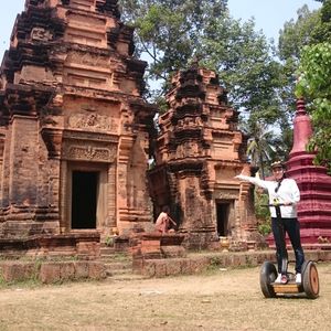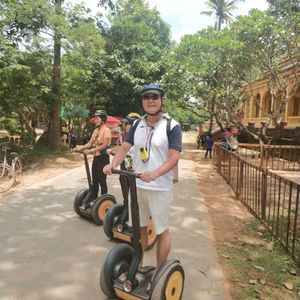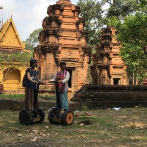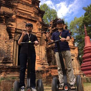 最初は、運動が苦手で不安だった友人も練習5分で乗りこなし、最後は「最高に楽しかった!」と言うほどセグウェイを気に入ってました。ガイドさんがタイミングよく休憩を挟んでくれたり、乗車中は完璧な安全配慮をしてくれるので公道も不安なく、むしろ町散策を楽しむことができました。ガイドさんはカンボジア人と在住日本人のペアだったのですが、カンボジアの歴史観や寺院訪問時の案内やお話を通して、それぞれの宗教観に触れる事ができて、とても興味深かったです。また撮影ポイントも心得ていて動画もたくさん撮ってもらいました。このツアーで訪れる遺跡では、2018年3月時点で遺跡観光で必要なアンコールパスは不要です。遺跡観光の合間にセグウェイで近代のカンボジアの歴史に触れられるこのツアーをお勧めします。