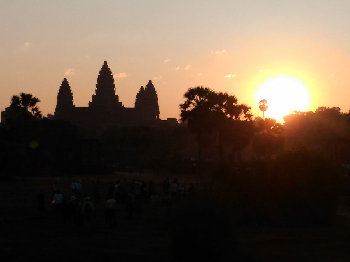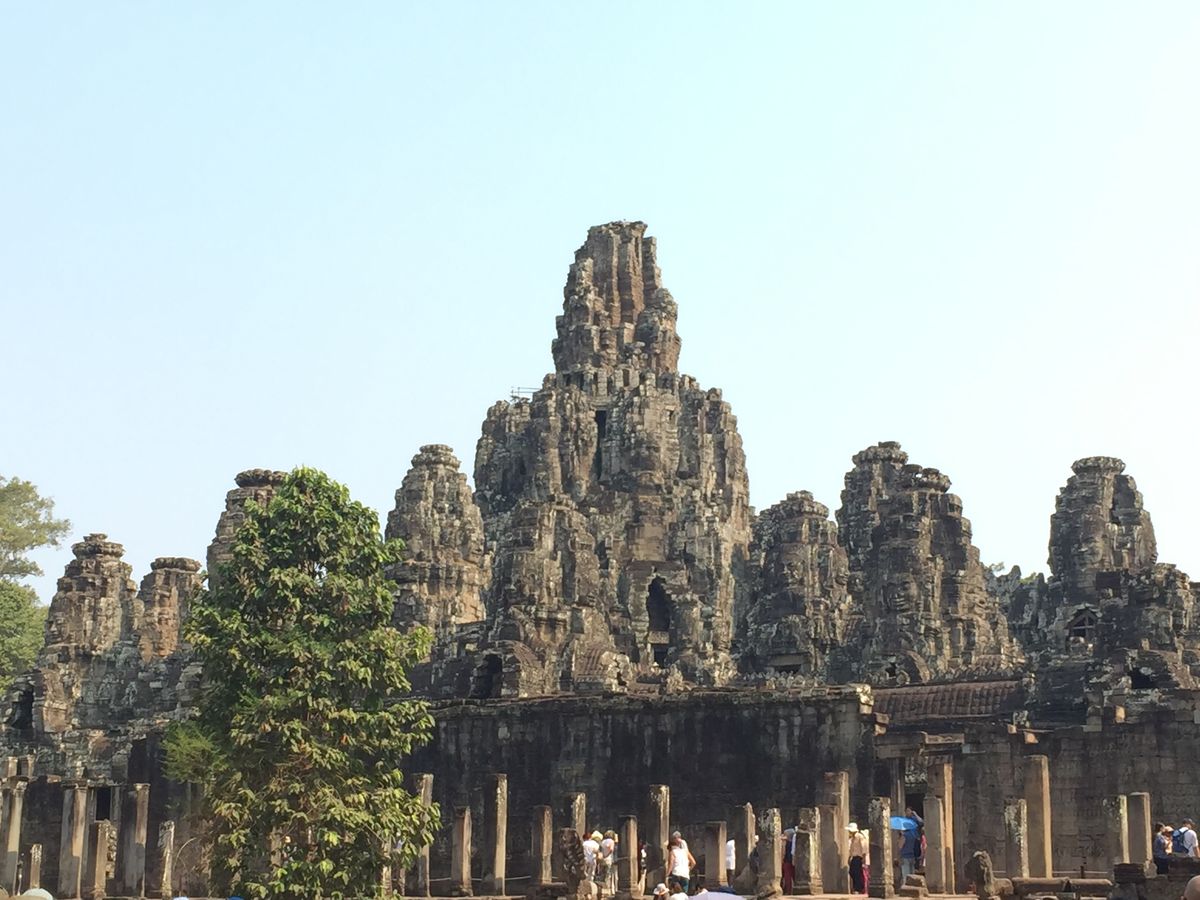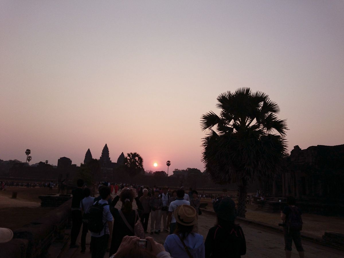 朝日を見るために真っ暗な中から出発。日の出の1時間前に到着したにも関わらず、アンコール・ワットには人。人。人。いいポジションは取れませんでしたが、素敵な日の出を見ることができました。この後、一度ホテルに戻り休憩。アンコール・トムから見学に行きました。日曜日だったためか、人が多すぎて蒸し風呂のようでした。人が多すぎて写真をゆっくり取ることはできませんでした。アンコール・ワットは第三回廊に上るために暑い中並ばなければいけませんが、上から眺めも良く、見に行く価値はありました。ガイドさんの説明はゆっくり聞けなかったのですが、それもしょうがないと思います。