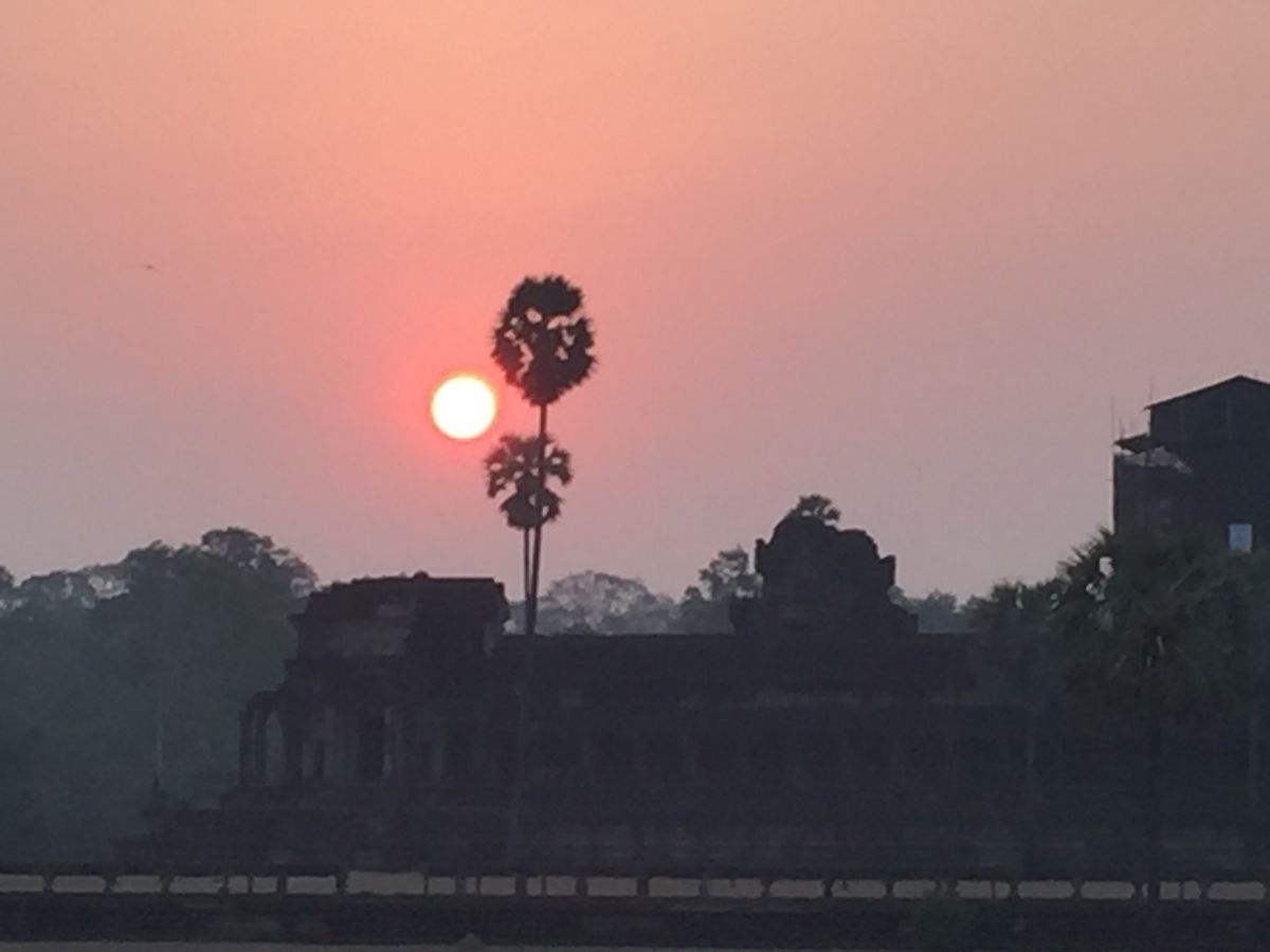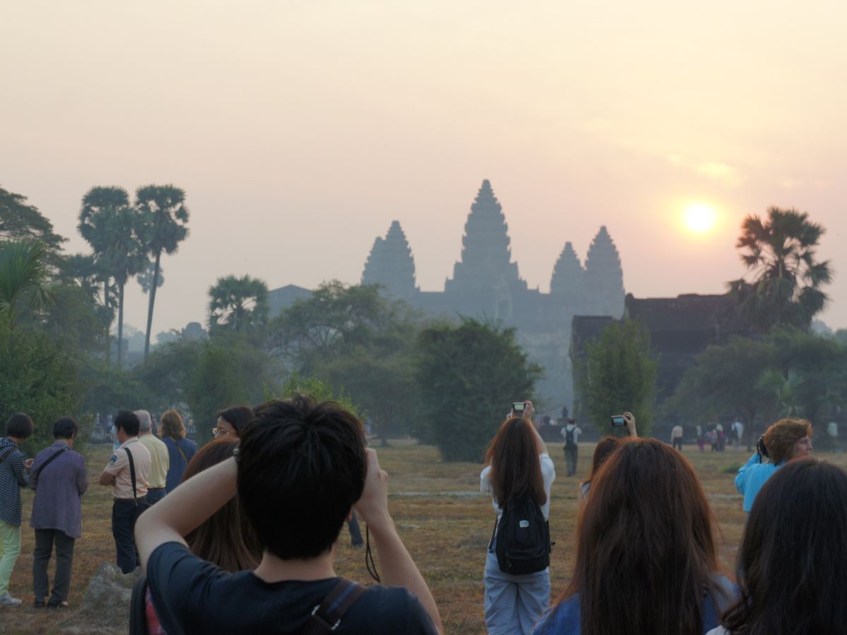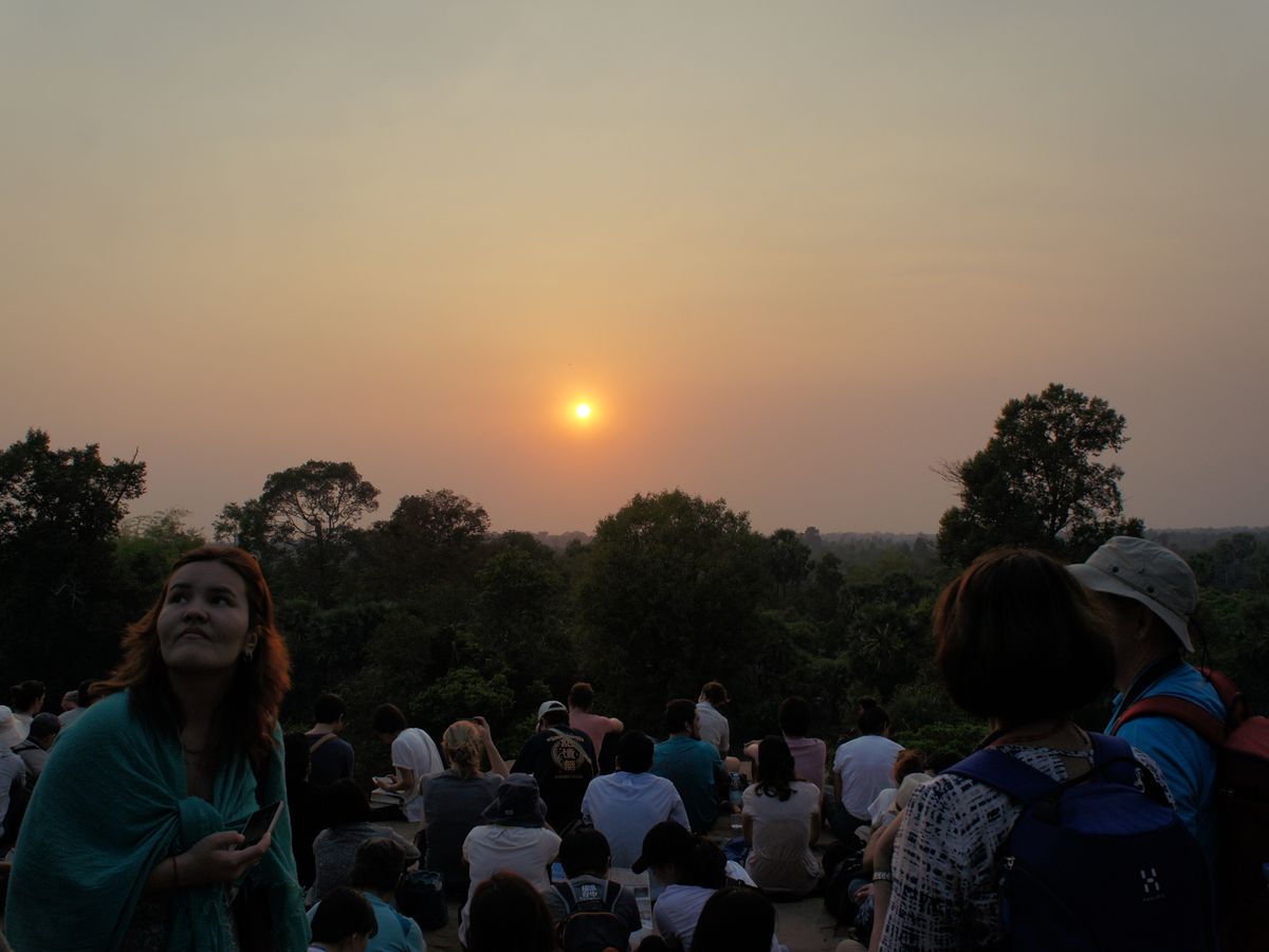 朝日を見るために真っ暗な中から出発。日の出の1時間前に到着したにも関わらず、アンコール・ワットには人。人。人。いいポジションは取れませんでしたが、素敵な日の出を見ることができました。この後、一度ホテルに戻り休憩。アンコール・トムから見学に行きました。日曜日だったためか、人が多すぎて蒸し風呂のようでした。人が多すぎて写真をゆっくり取ることはできませんでした。アンコール・ワットは第三回廊に上るために暑い中並ばなければいけませんが、上から眺めも良く、見に行く価値はありました。ガイドさんの説明はゆっくり聞けなかったのですが、それもしょうがないと思います。