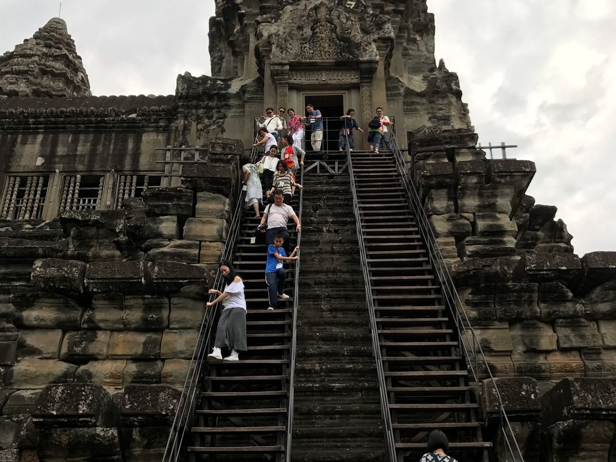 朝暗いうち ガイドさんに懐中電灯で案内してもらいながらアンコールワットで朝日鑑賞して夜21時過ぎまで。最初はハード過ぎるかと心配していましたが一つ一つの行程がゆっくり時間をとってありました。昼食 夕食に使うレストランは美味しく清潔ですが、ドリンクの価格が日本並み。カードが使えないので注意が必要です。