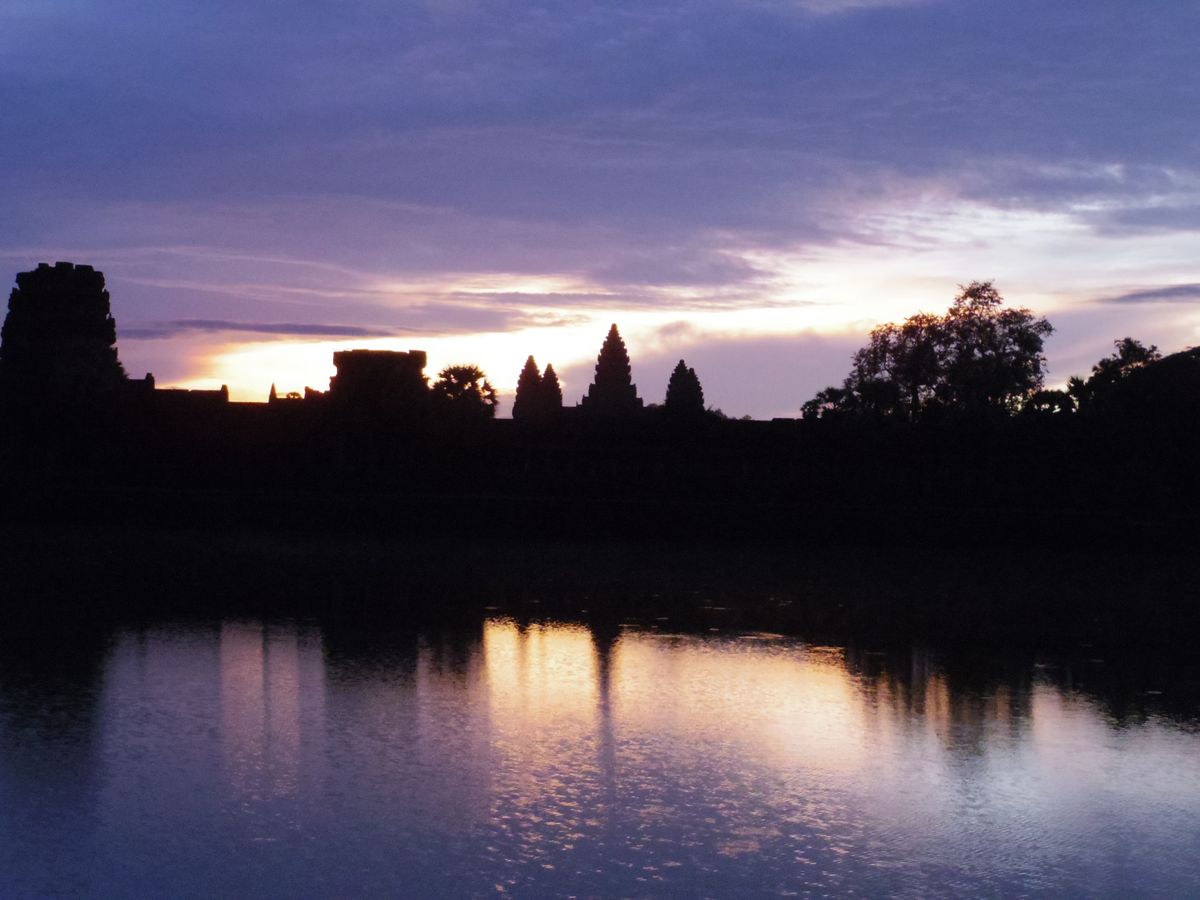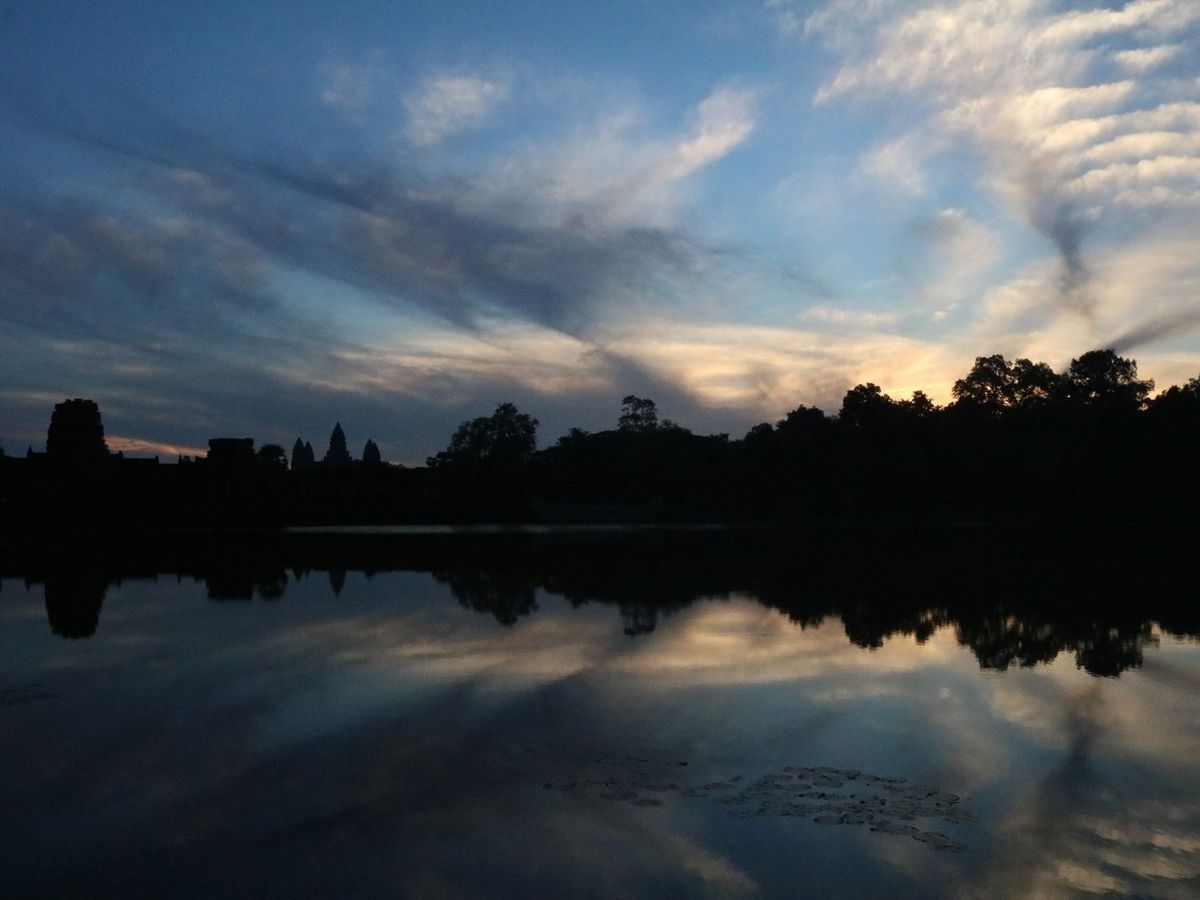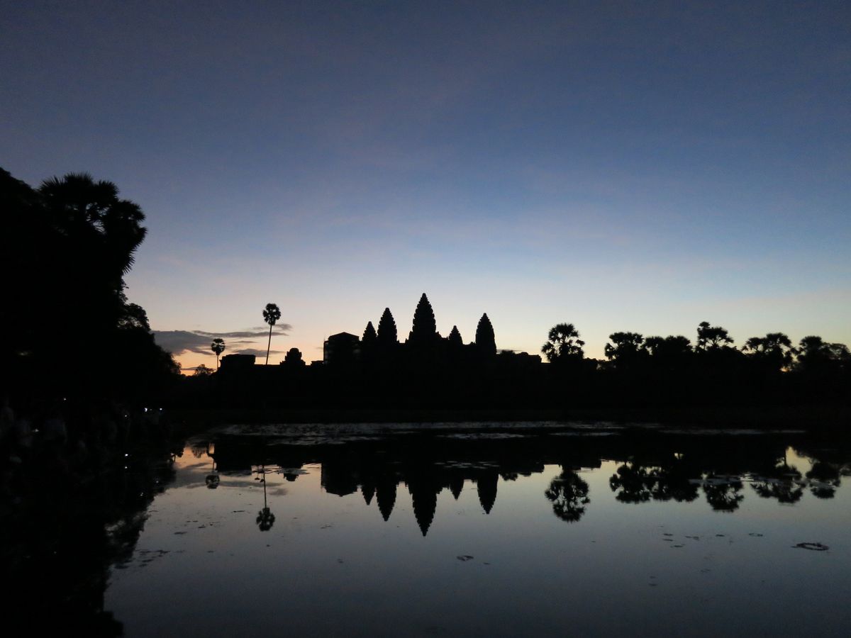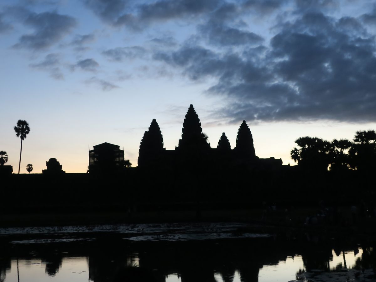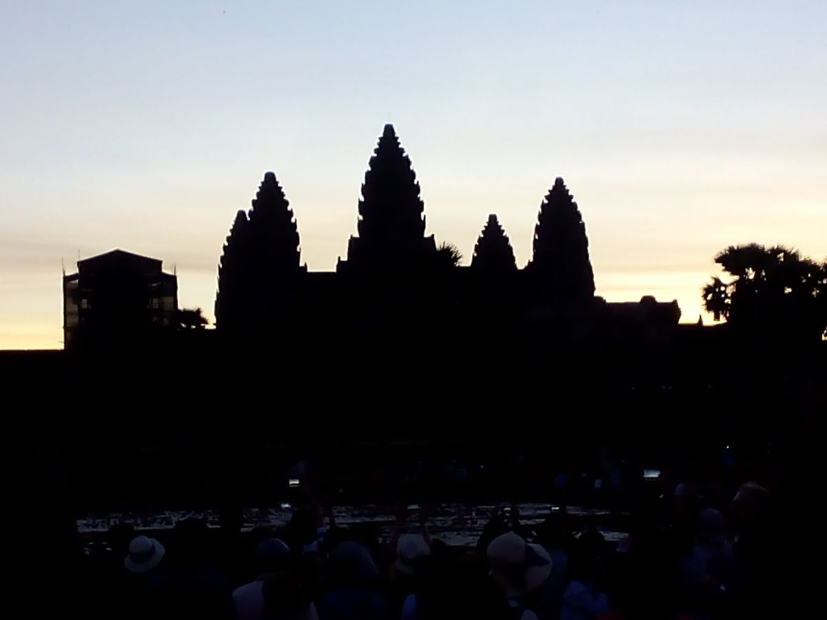 早朝にホテルへ迎えがあり、アンコールワットでの日の出を見に出かけます。