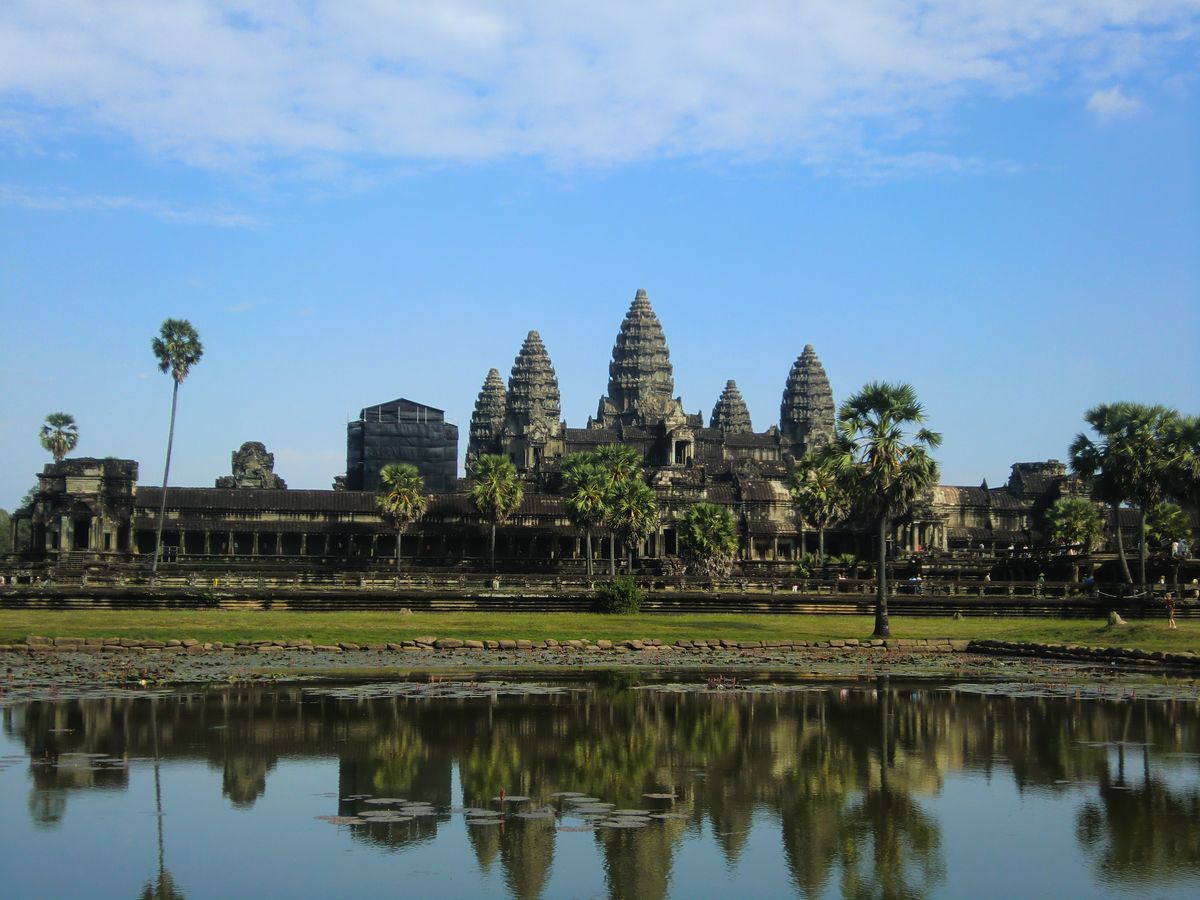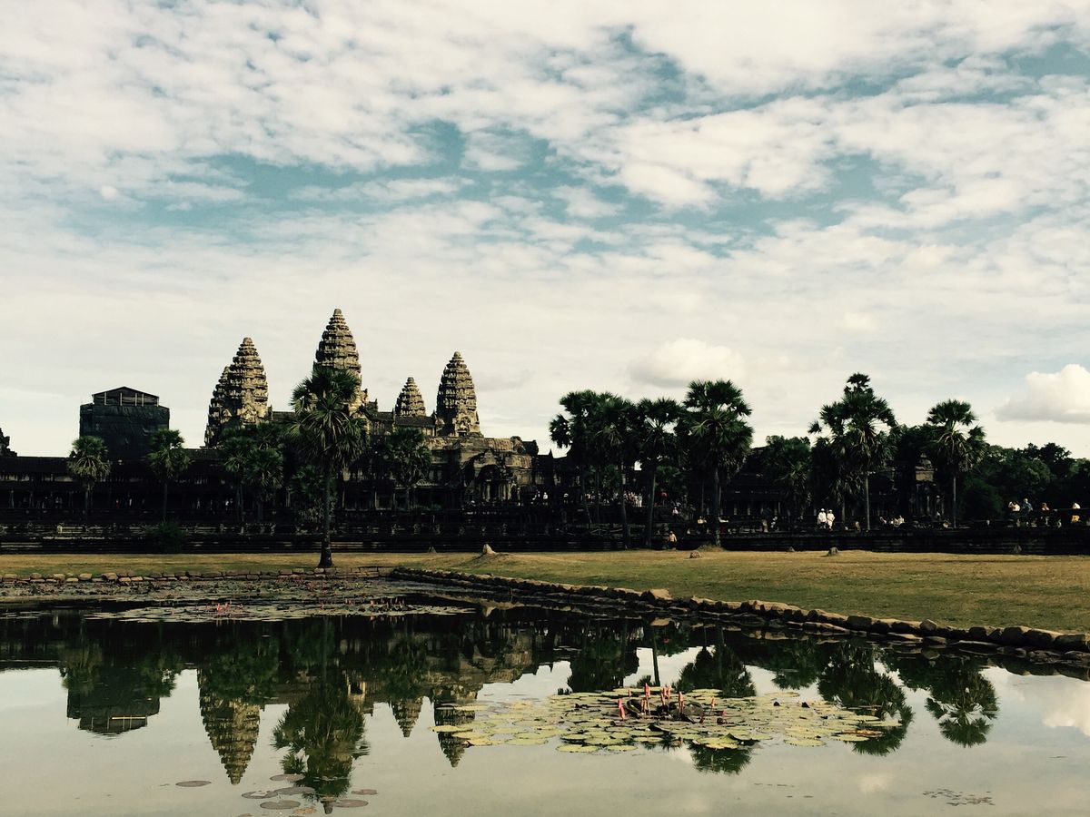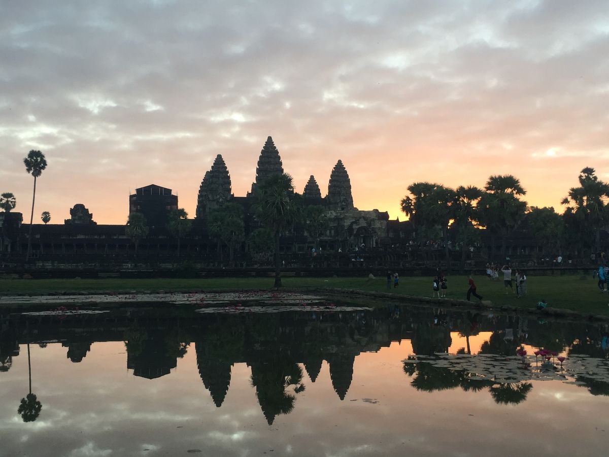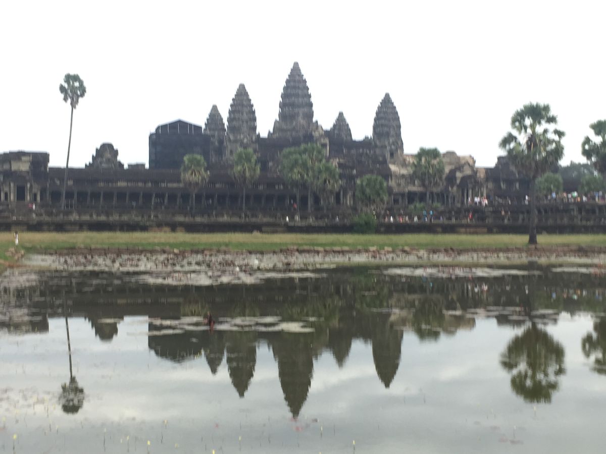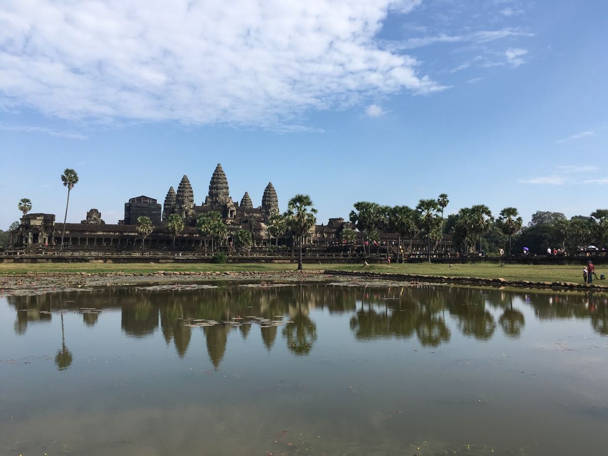アンコールワット到着時には、見所スポットの池には既に大勢の人がいました。