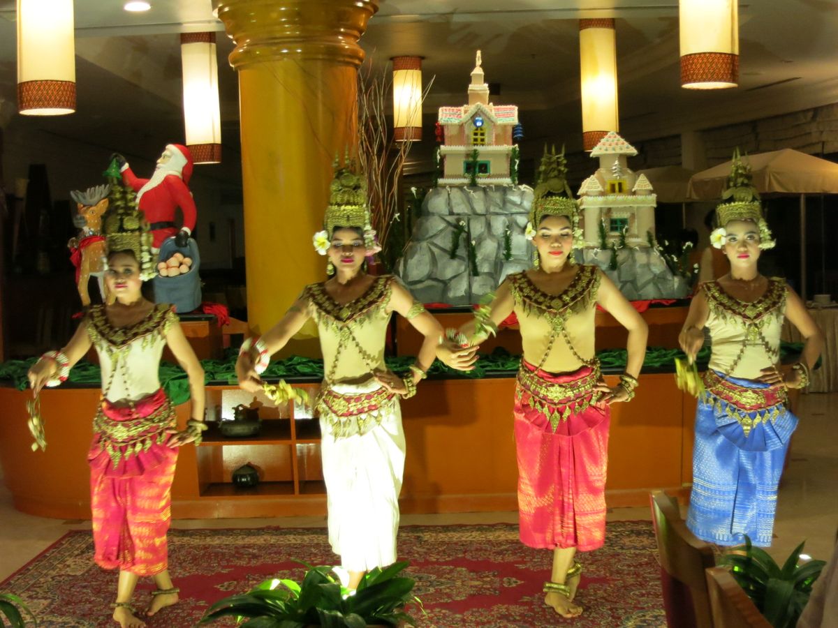 最後のアプサラダンスショー&ディナーは、食事もダンスもよかったのですが、立派な大ホテルの、100席以上はある屋外レストランで、お客が私たちだけだったという、居心地の悪い思いをしたのは、ご愛嬌でしょう。