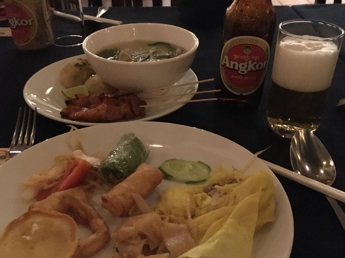 クメール料理が口に合うか心配でしたが、昼食のコース料理も夕食のビュッフェもそれなりにおいしかったです。