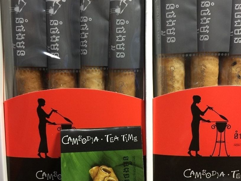 お土産屋(お菓子)さんに二箇所連れて行っていただきました。観光地のツアーにありがちな、ガイドやツアー会社とお店が結託してお金を使わせるものだと、思っていましたが、カンボジアならではの深い意味があって、自分を恥じました。内戦で人口の4分の1以上が殺された中で、カンボジアを復興し、若い人々に仕事の場を確保しようと奮闘している、日本人のお店2軒でした。1軒目は Tea Timeというお店で、店先で焼いて試食させてくださるノムトムムーンというカンボジアの伝統菓子をリファインしたものです。ヨックモックの大型版みたいなものですが、味はもっと素朴な感じがします。とてもおいしいですよ(写真)。2軒目は マダムサチコの アンコールクッキー(写真)のお店です。 両方とも、日本人が、カンボジア復興のため雇用創出に頑張ってできたお店と、帰国後に JAL会員誌AGORAのバックナンバーで読みました。事前にわかっていたらもっと買ってきたのに、と思っています。ネットでは、アンコールクッキーのお店についていろいろ悪くも書かれていますが、私は、お菓子を作っている人、ガイドさん、運転手さんにお金が回って、産業として成立するなら喜んで購入します。
