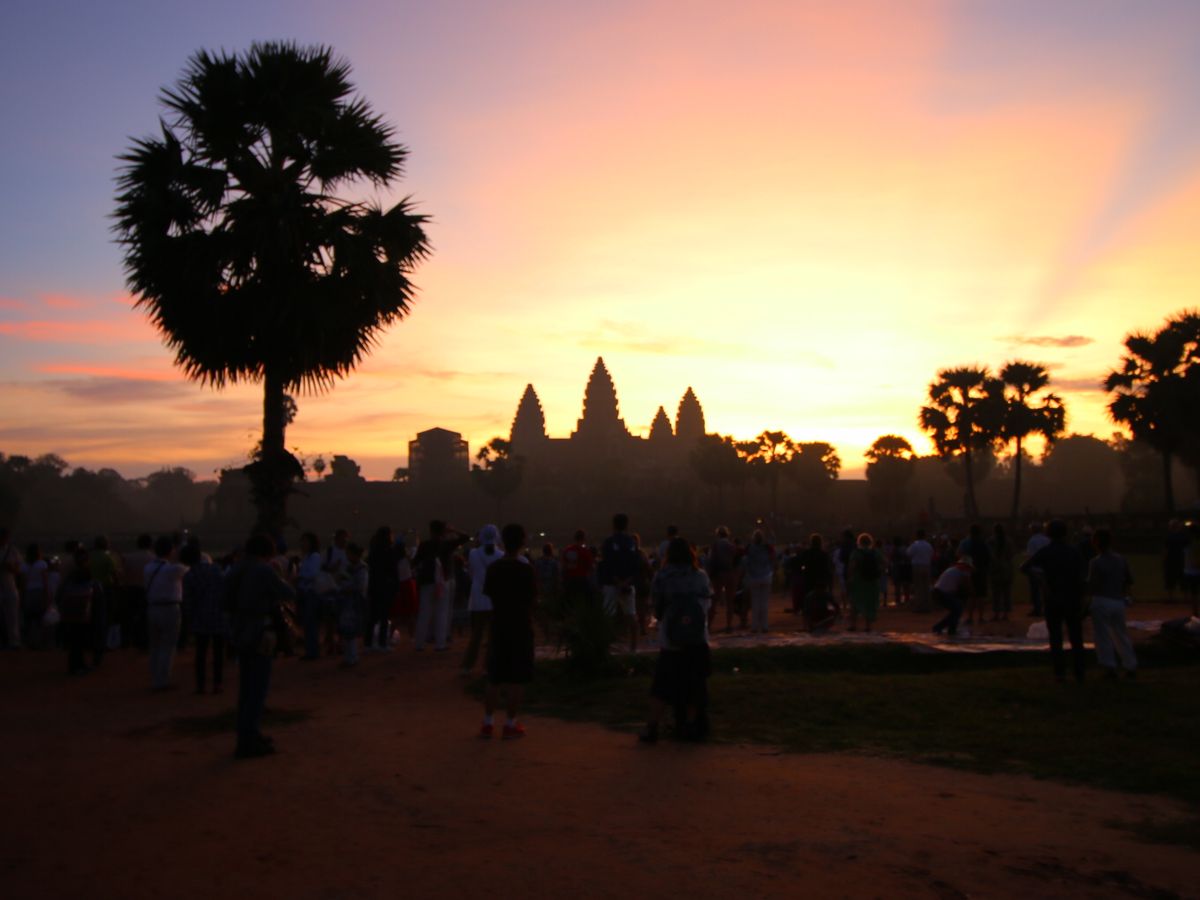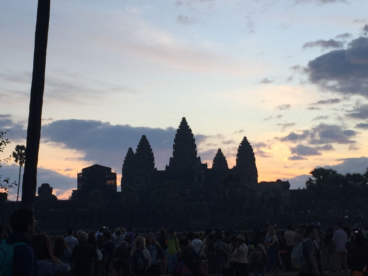アンコールワットでの夕日鑑賞はできないので、近くの遺跡での鑑賞だったのですが、池の周りの道からでもよいのでアンコールワットを鑑賞したかった。