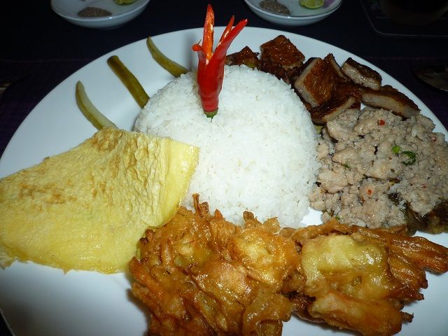 アンコールワット日の出観光付きだったので、比較的近いタラホテルに宿泊していて正解でした。24人乗りマイクロバスでAM5時に最後のピックアップをしてもらい、真っ暗な中アンコール遺跡共通入場チケット売り場に行ってから長い1日がスタートしました。天気もおおむね良好でした。朝食は、日の出観光のあと一度ホテルに戻りましたが、この時もアンコール近くのホテルというメリットで一番先に送ってもらいました。約1時間後に再ピックアップが来て、アンコールトム、タプロム観光のあと、現地ツアー会社の建物の1階にある系列の食堂でランチ。添付写真にありますが、日本人にも美味しく食べられるものでした。アンコールワットに入る前に雨が降り出し、大きな木の下で20分雨宿りしているうちに晴天に。サンセットは時間切れになって見れなかったのは残念でした。最後のアプサラディナーが終わったときには、へとへとに疲れてましたが、満足感はありました。