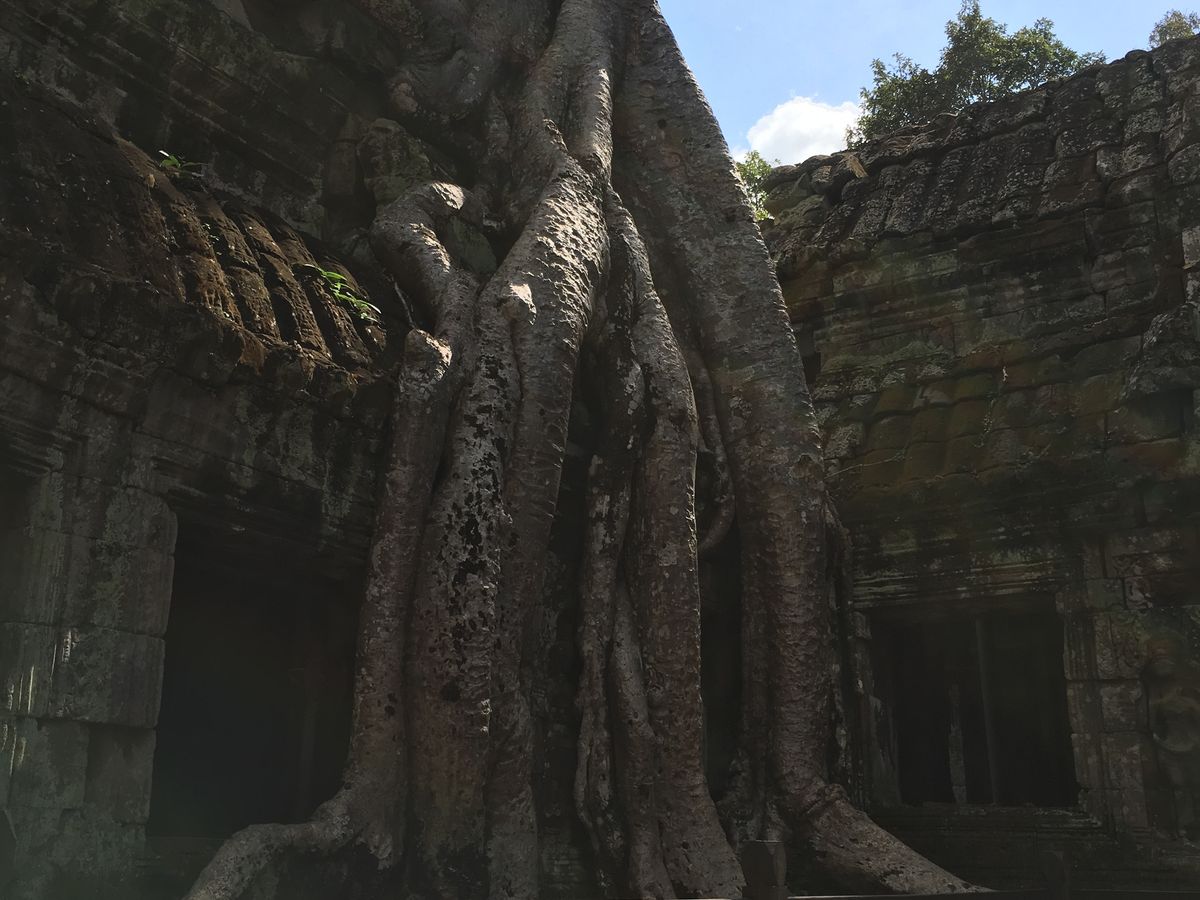 朝日はやっぱり素敵。感動的です。トムもこんなに大きな遺跡を作る力があった文明があったと圧倒されます。タプロームは映画の撮影地としても有名。ガジュマルが遺跡を侵食していて、でもそのガジュマルがなければ崩壊するというある種の矛盾がなんとも言えません。