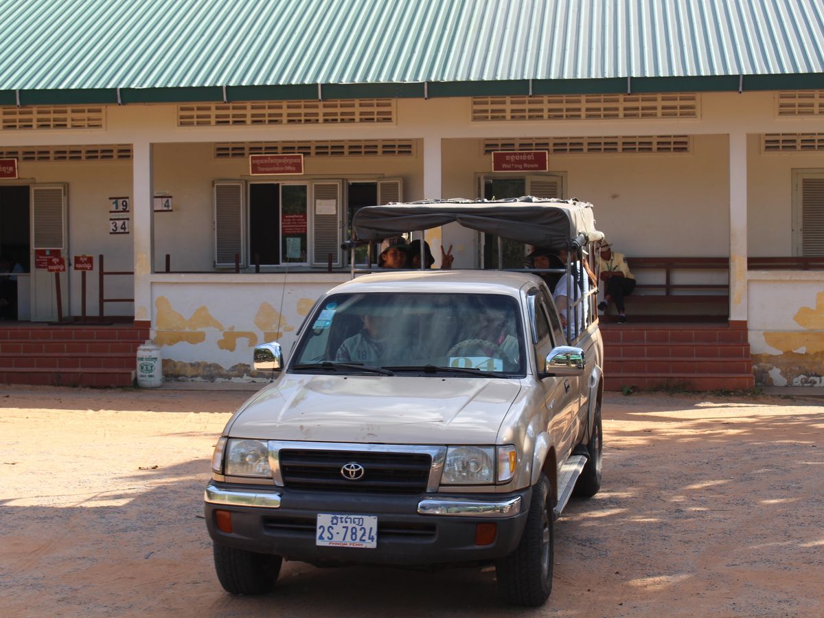 我々のホテルはバスが入れる通りからさらに10分弱歩かなければなりませんでしたが、親切にも、行きはトゥクトゥクに交渉してただで乗せてくれ、帰りは自分のバイクで(カンボジアならでの3人乗り)ホテルに送ってくれました。