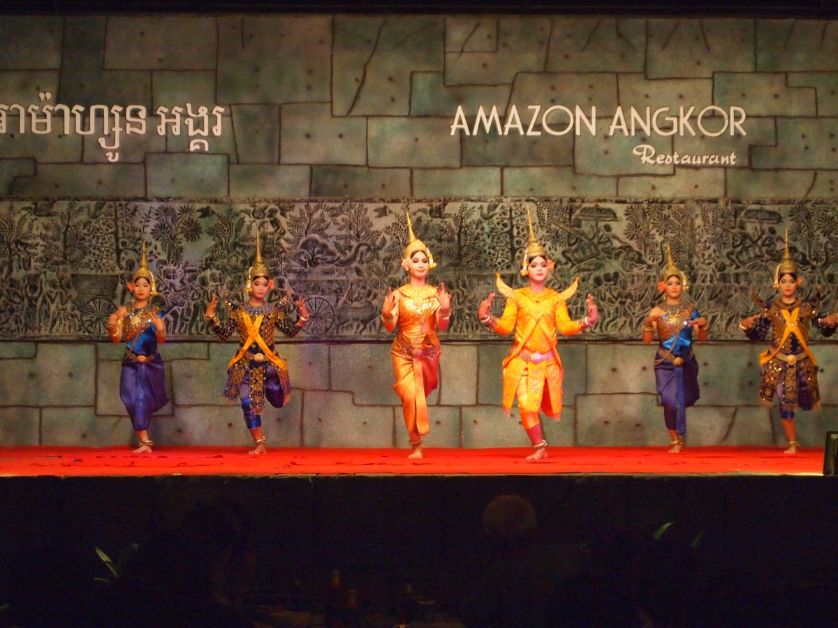アプサラダンスショーはどこかコミカルな伝統的な民族舞踊から