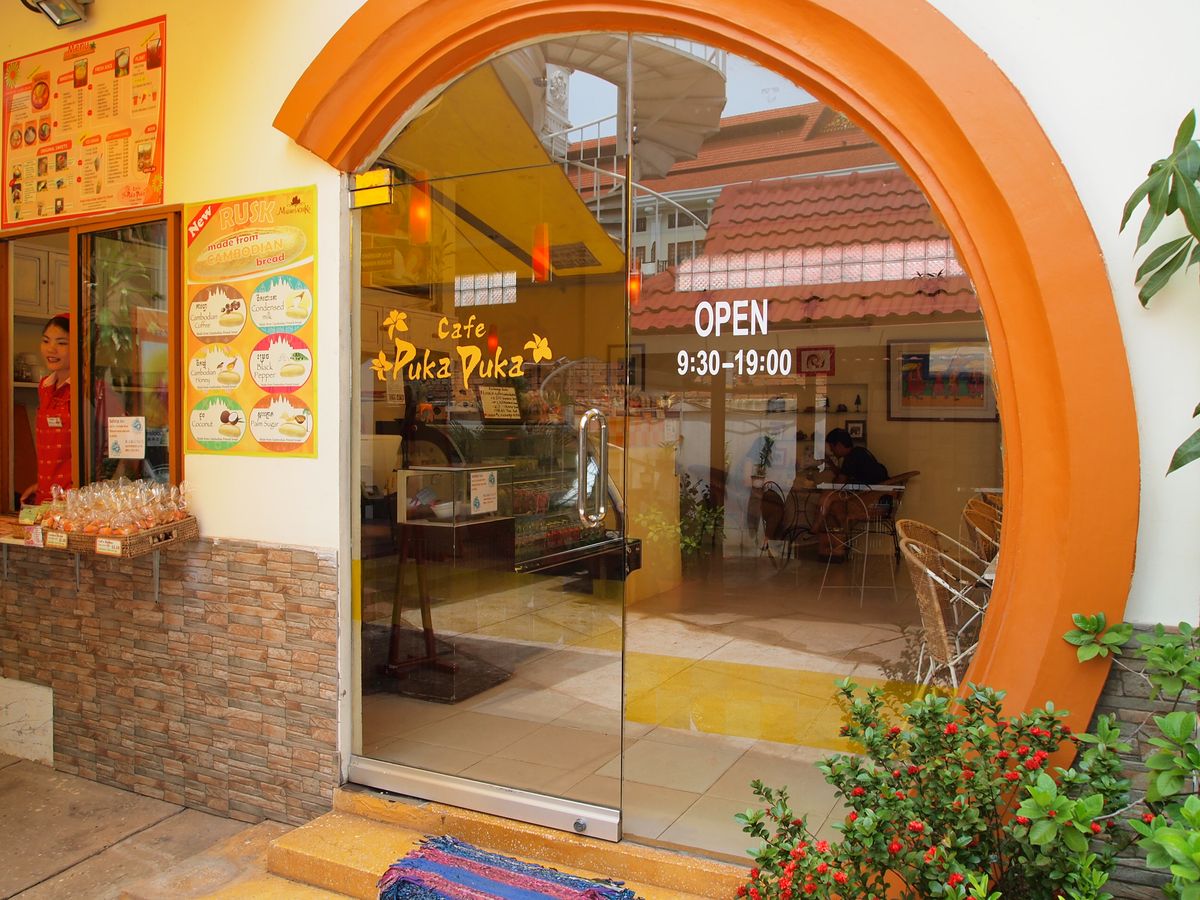 昼食はアンコールクッキーの店の5軒となりのツアー会社の事務所兼レストランにて。となりに他のローストコーヒーの店があり、勝手に休憩時間でコーヒーが楽しめる。