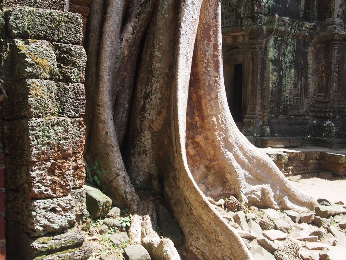 遺跡はというと、アンコールワットとは趣が異なり、神秘的な雰囲気に圧倒されました。苔の美しさや、崩れた建物、様々な場所から生え伸びる木の根など、写真を撮りたくなる風景ばかりでした。