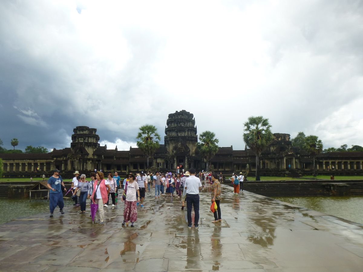 アンコールワット全体をみて広く浅くですが、見て回ることができました。ただ、ツアーガイドの日本語が聞き取りづらく、声の大きさも後ろのほうには全く届かずでマイクを持ってほしかったです。また、アンコールワットを見学の際にバスから降りるときにちょうど前が見えないぐらいのスコールが降ってきました。スコールなので15分ほどで上がったのですが、現地のツアーガイドさんなら、スコールは上がることもわかっているはずです。しかし、スコールの中、アンコールワットへ向かい傘をさしていてもびしゃびしゃになりました。(アンコールワットの建物は屋根があるのに)それには、私たちだけでなくほかのツアー客もこんな雨のなか向かわなくても雨がやむもしくは弱くなるのをバスの中で少し待てばよいのにと言っていました。その点がすごく残念でした。
