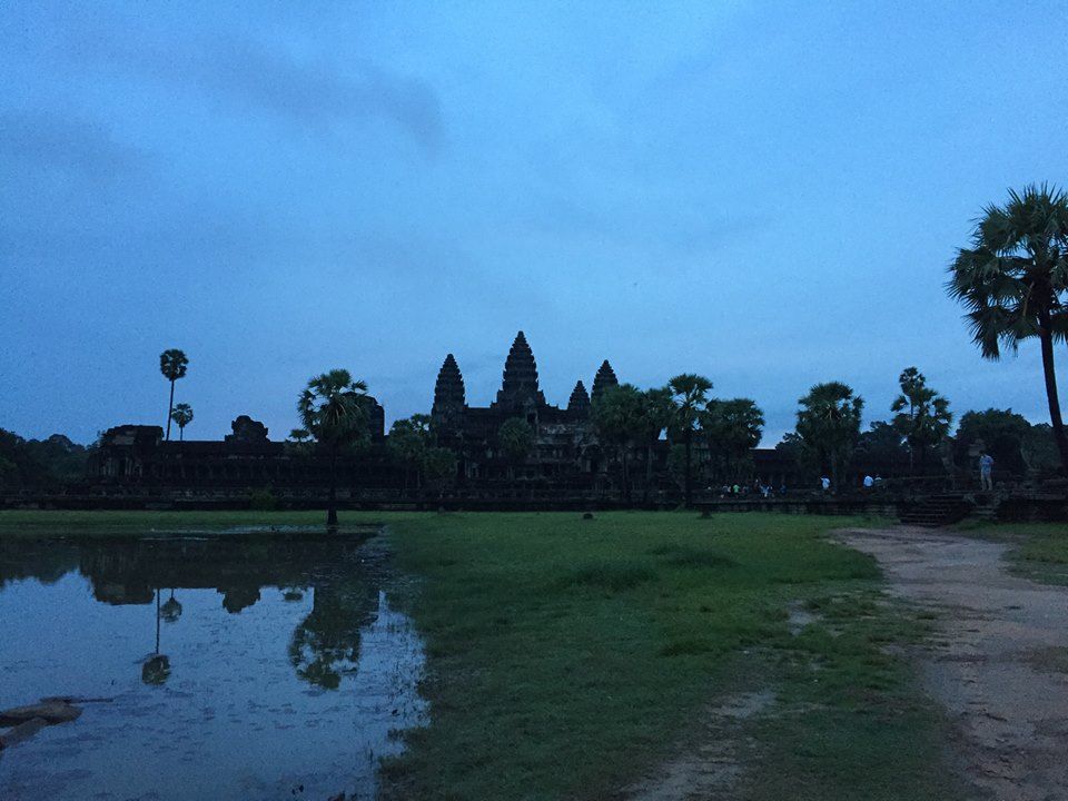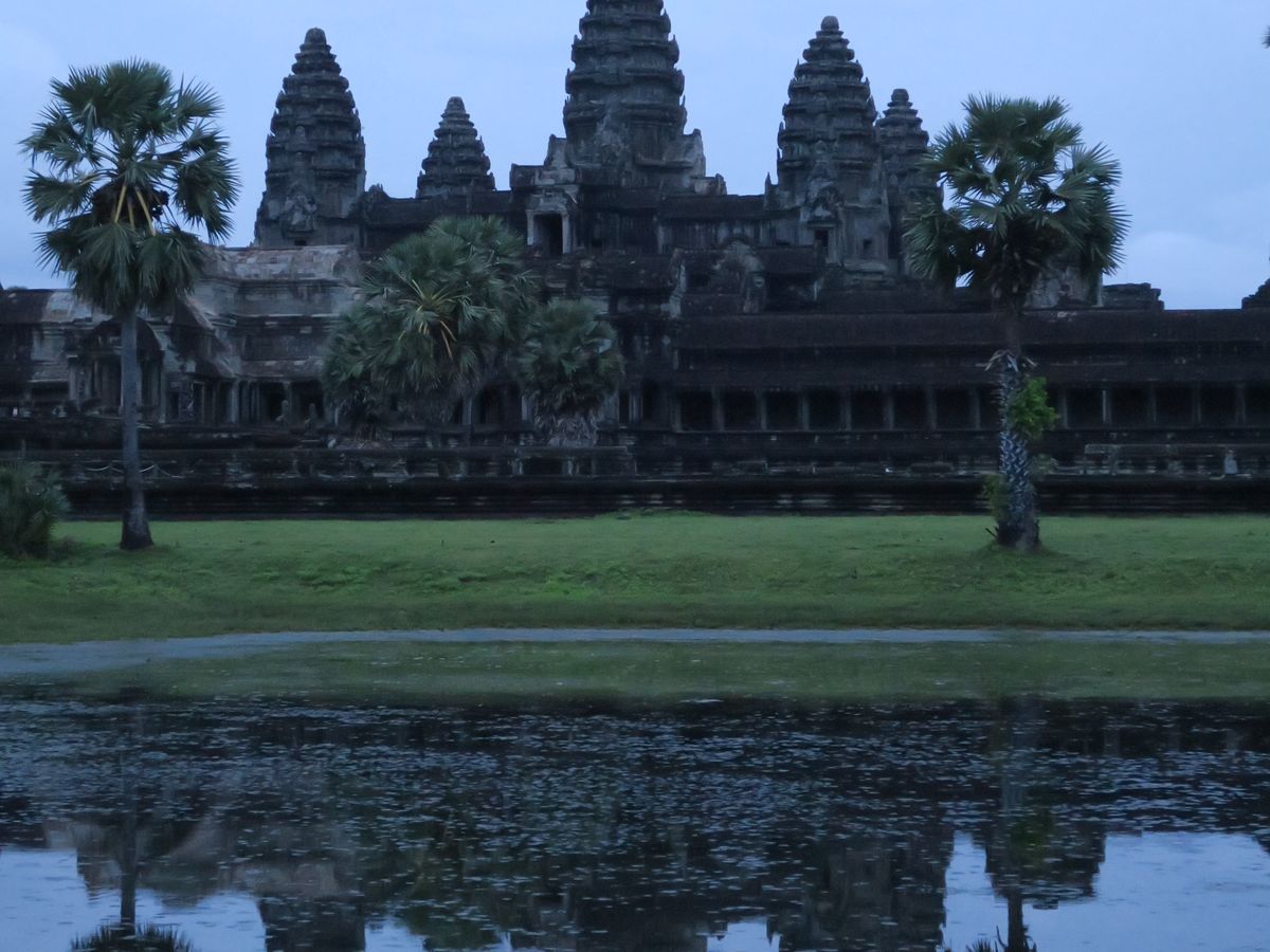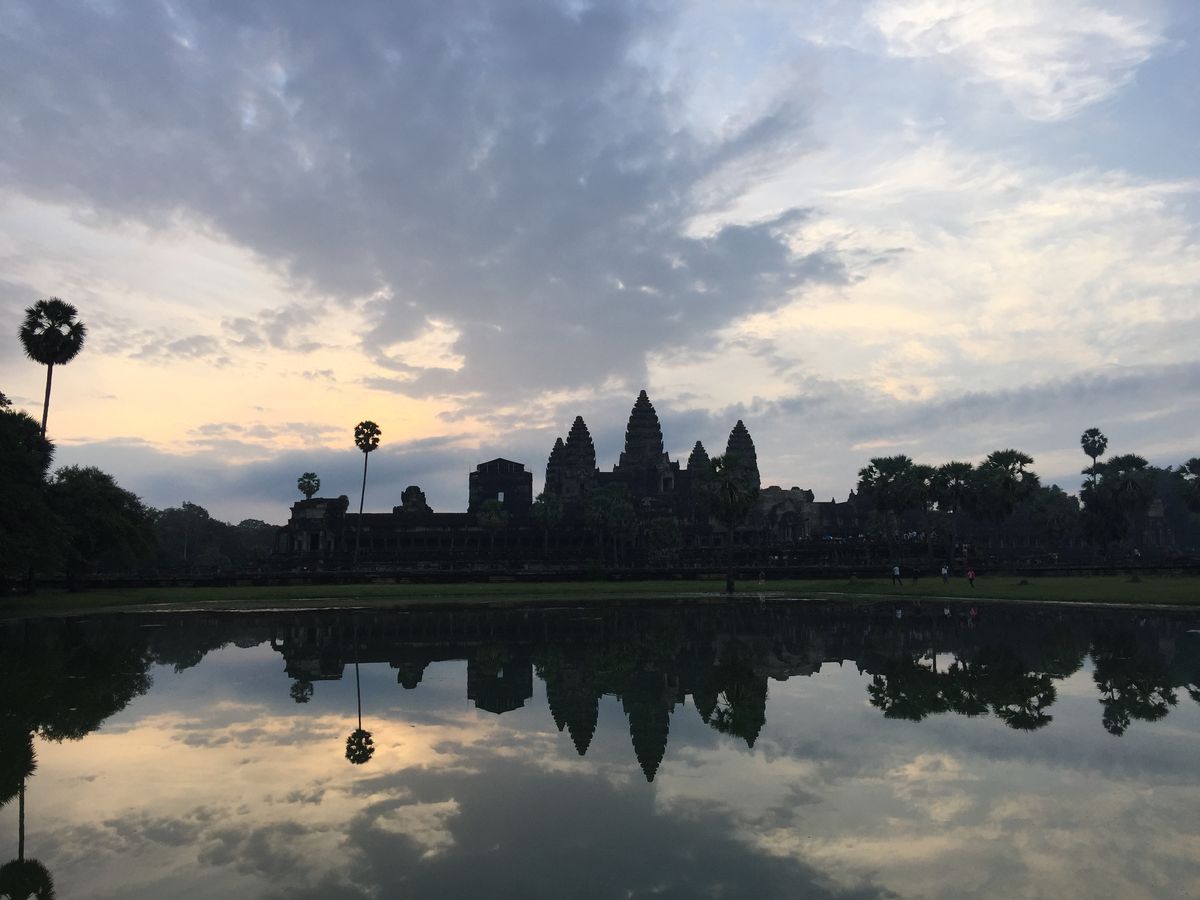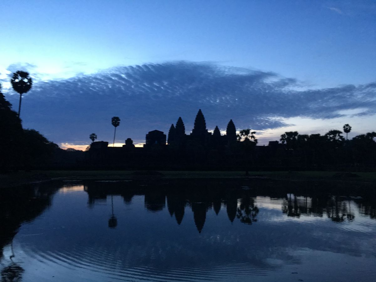 朝4:55、お迎えに来ていただいた後、チケットセンターに行きチケットを購入し、朝日鑑賞のためアンコールワットへ。雨季なので期待はしていなかったのですが、案の定朝日は見られませんでした。残念!