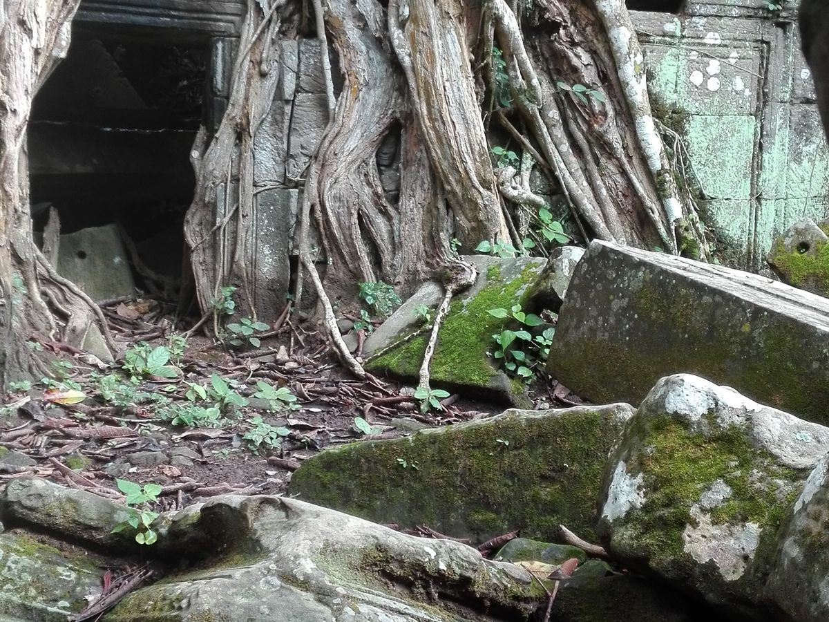 大量の瓦礫の中、朝露の緑濃い苔の迷路を散策するベンメリア、広範囲に渡り遺跡群を束ねるコーケー、小さな集落の中にいきなりそびえ立つピラミッド プラサット・トム、4WDに乗り換え山を上り、崖の上にあるプレアヴィヒア。